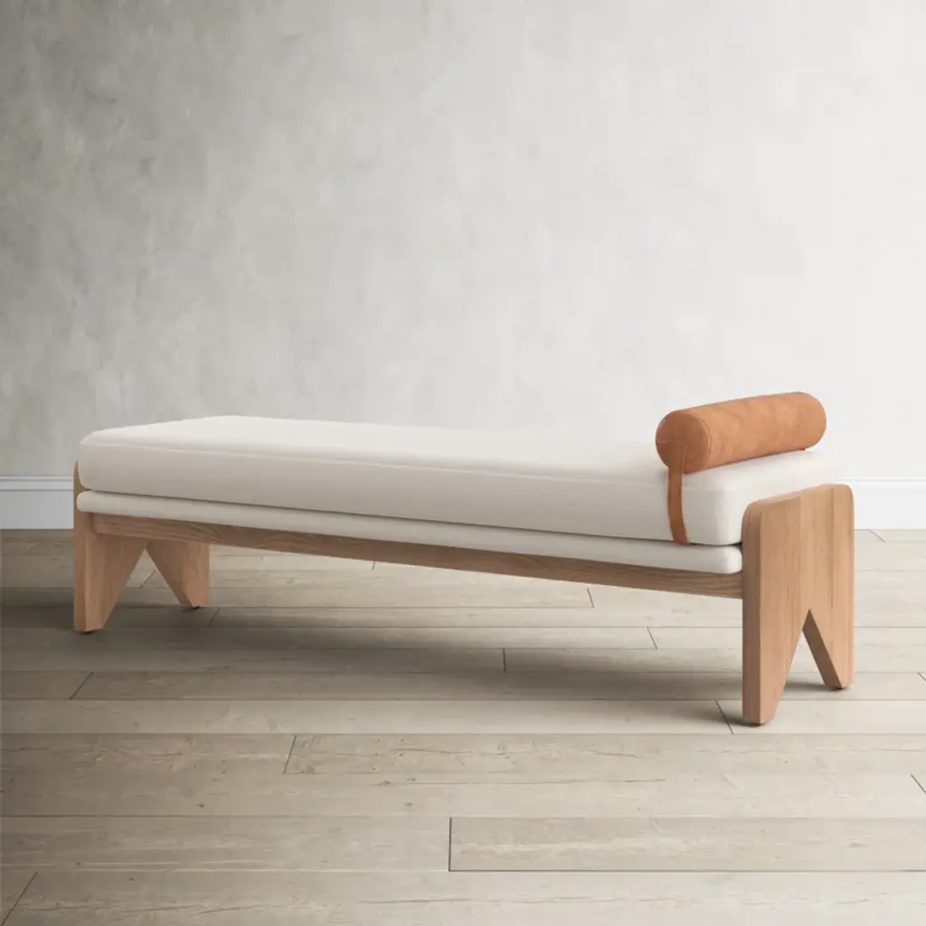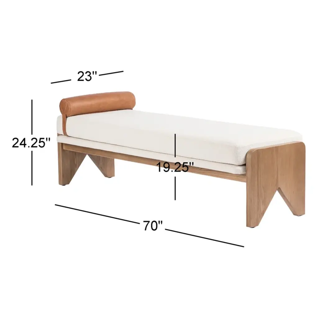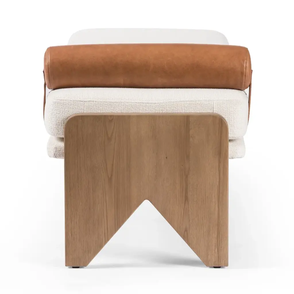 Crisp white performance fabric places a sensible twist on streamlined bench styling. A solid ash base with cutout sides adds a detail-driven finishing touch with mid-century vibes.