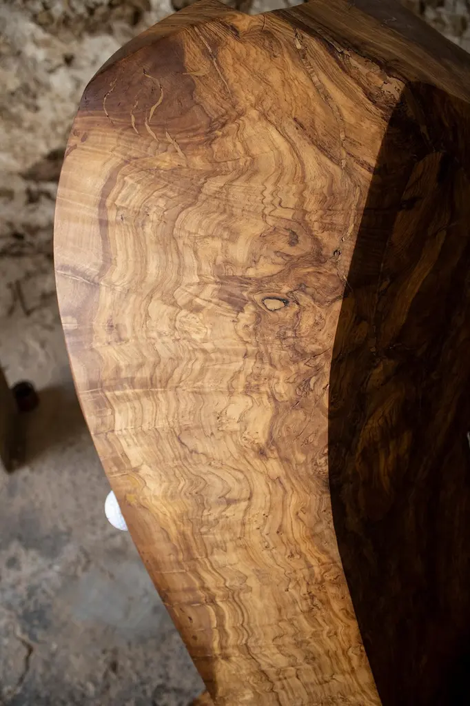 Ariadna bench by Woody FidlerMaterials: Olive woodDimensions: W 150 x D 100 x H 105 cmWoody Fidler feels honored to live in a country where olive growing dates back to 4000 BC, as documented in Minoan civilization.Deep love for the earth and deep respect for olive trees is the main reason why the artist realized the degree of waste during the extraction and use of wood.The experience gained gives him reason for his work.Sculptural furniture is made of recovered trees, damaged by the weather or human activities.The works created by the artist are born from a creative dialogue with the material from which he creates sculpture furniture.Everything starts and ends in the tree. The olive tree inspires the artist's search.Shapes, holes, cracks and the passage of time lead to a carefully selected design.Gives these trees a new life.
