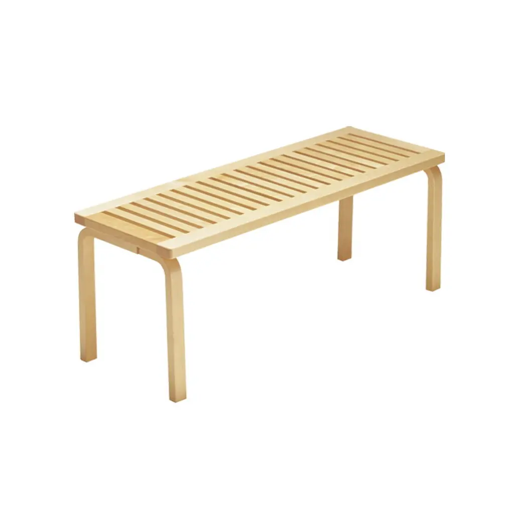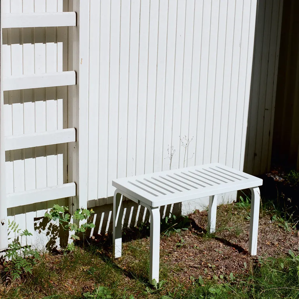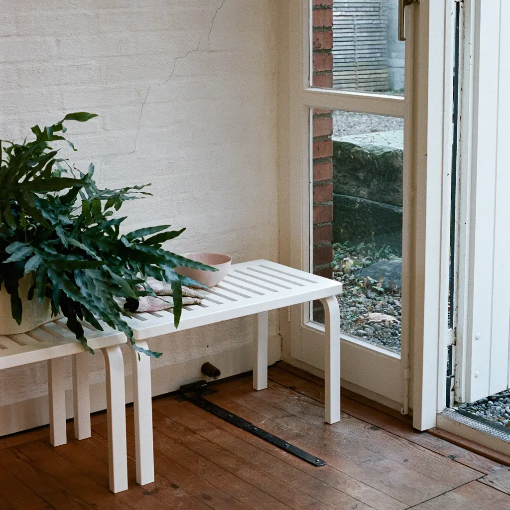 Lightweight and versatile, the Bench 153 can live in many areas throughout your home. Designed in 1945 by Alvar Aalto, the sold birch wood bench features vertical recesses in its seat which adds lightness to the design so it can be moved easily from room to room. The legs of the bench employ Aalto’s famed “L-leg” innovation, a process that involves making slits in the wood, and inserting and gluing wood veneer strips. The Bench 153 can be used as seating or as an attractive way to display items such books, plants, folded blankets or decorative objects, or as a place to store shoes in an entrance hallway or porch. Made in Finland by Artek, the Bench 153 measures 17.5h x 44.25l x 15.75”d. Some assembly required. Both Alvar Aalto and Artek are represented in MoMA’s collection.