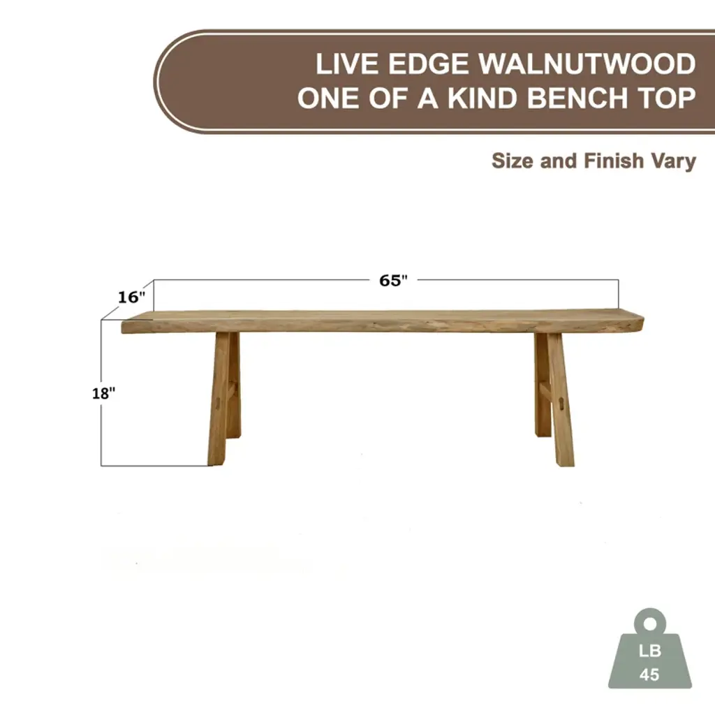 Artissance Live Edge Solid Walnut Natural Wood Bench, 18 Inch Tall (Color & Size May Vary)