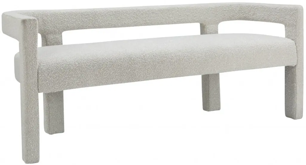 Elegant and eye-catching, the stunning boucle fabric Athena Bench from Meridian Furniture is the perfect addition to any space.