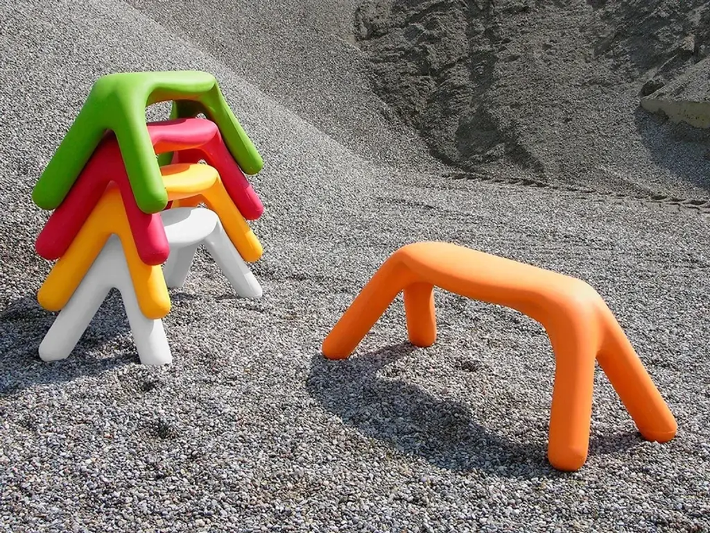 Atlas is a colourful and playful bench, designed specifically to provide new, innovative, and unexpected seating solutions with a strong personality. Atlas is maneuverable, light, funny and very useful, thanks to its particular shape and bright colours. Minimal and particular, Atlas has been created by the young Italian designer Giorgio Biscaro: the bench has got soft lines and little dimensions, and it is ideal both to indoor and outdoor. Thanks to its colourful design, Atlas is suitable for contract and events, but also for domestic settings.