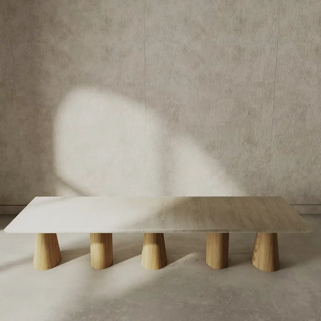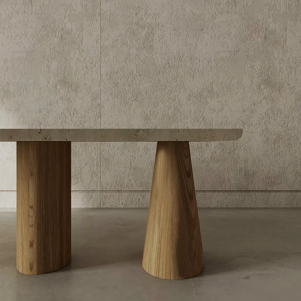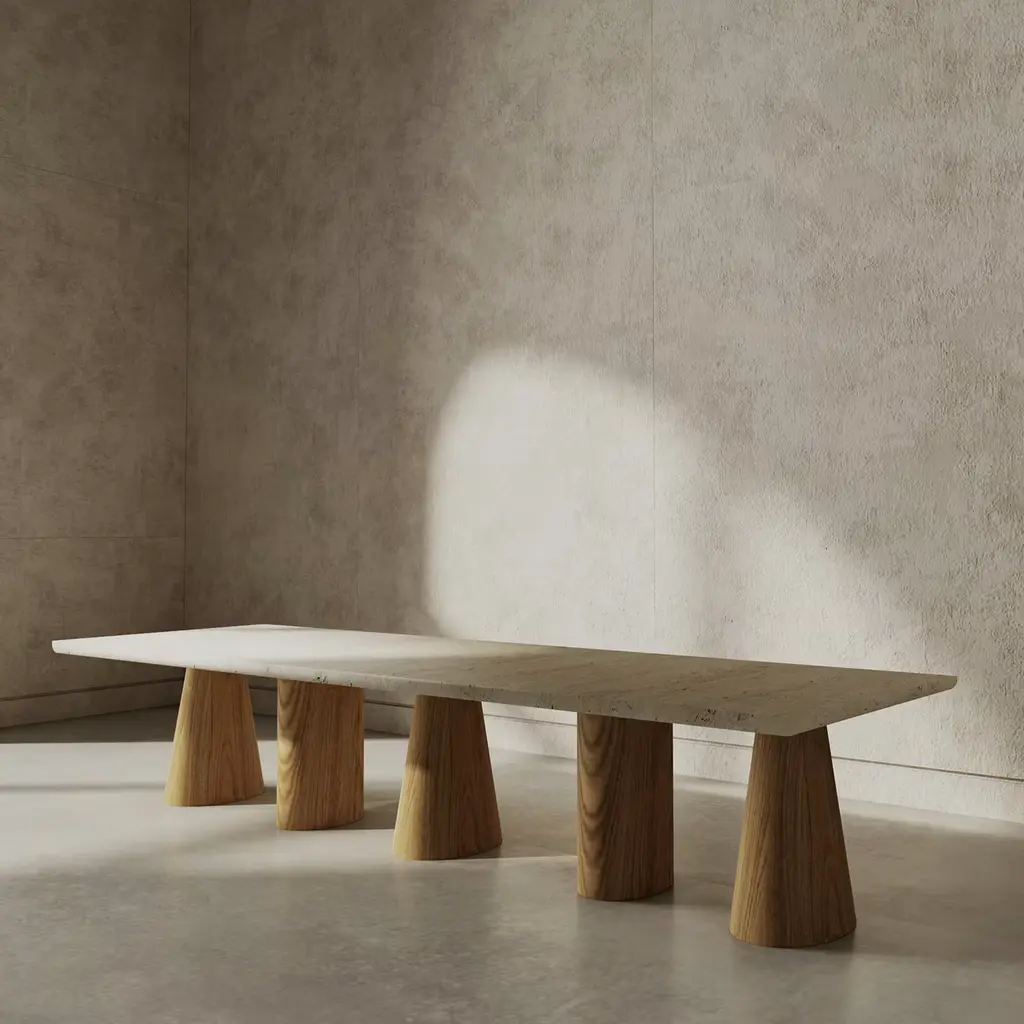 The Atrani Bench is a sophisticated design piece that beautifully marries the warm essence of solid oak with the timeless elegance of natural travertine. Its minimalist and sculptural style positions it as an exclusive furniture element, ideal for modern and refined environments. Inspired by the charming village of Atrani on the Amalfi Coast, this bench features a sturdy base crafted from solid oak, characterized by balanced conical shapes that provide stable and harmonious support for the travertine top. The Atrani Bench stands as a symbol of craftsmanship and enduring design, merging functionality with aesthetic grace.