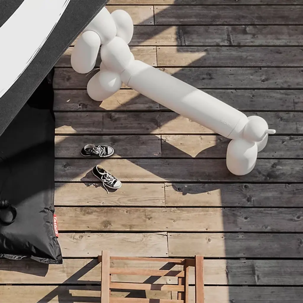 You can’t help but smile with the sight of and a seat on the Attackle Bench from Fatboy. Childhood memories instantly wash over you of a balloon artist conjuring up life-filled animals before your eyes. This piece exists with a lighthearted presence in your home or outside. Like a good boy, Attackle stands stoically, offering you and a special someone a rest on its pleasantly rounded seat. Attackle comes to life with playful forms and charming details accentuating his long snout and adorable tail.