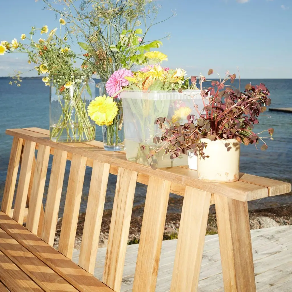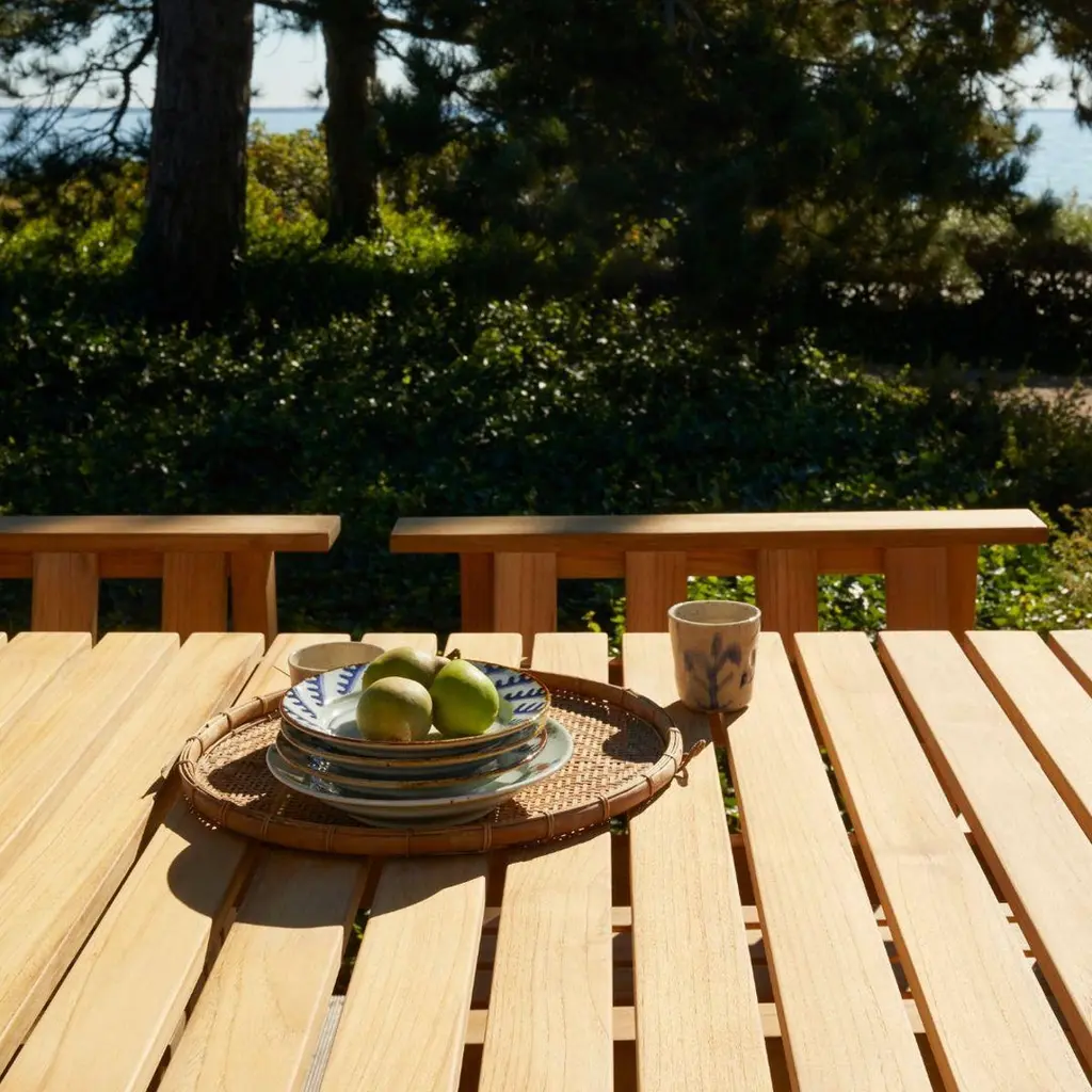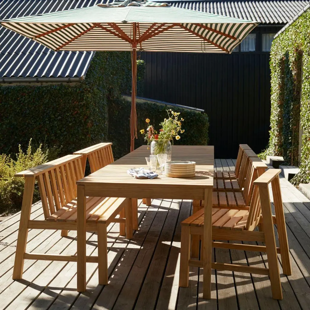 Aurélien Barbry outdoor 'Cadence' bench in FSC Certified teak for SkagerakSkagerak was founded in 1976 by Jesper and Vibeke Panduro, who took inspiration from their love of Scandinavian design and its rich tradition. The brand emphasizes sustainability by using responsibly sourced materials and production methods that minimize waste and reduce environmental impact. Each piece of handcrafted furniture is designed to age with grace and last for generations.The 'Cadence' bench is part of a series offering enduring pieces with function beyond its intended purpose. Available as a chair, bench and table, the result is a complete and characteristic collection for relaxing and entertaining outdoors. The top of the bench features two horizontal planks providing the perfect perch for your favorite outdoor lantern, glass of wine or even small flower pots. Executed in 100% FSC Certified teak to the exacting standards of Skagerak.Price per item. Available to order in unlimited quantities. Available as a bench, chair and table, please see our separate listings. This listing is for the 'Cadence' bench in teak.In stock lead time 2-3 weeks. Out of stock lead time can be an additional 3-4 weeks, or longer. Lead times and stock availability are subject to change at any time and without notice. Please inquire for current lead times prior to placing time sensitive orders.Made to order.All sales final.