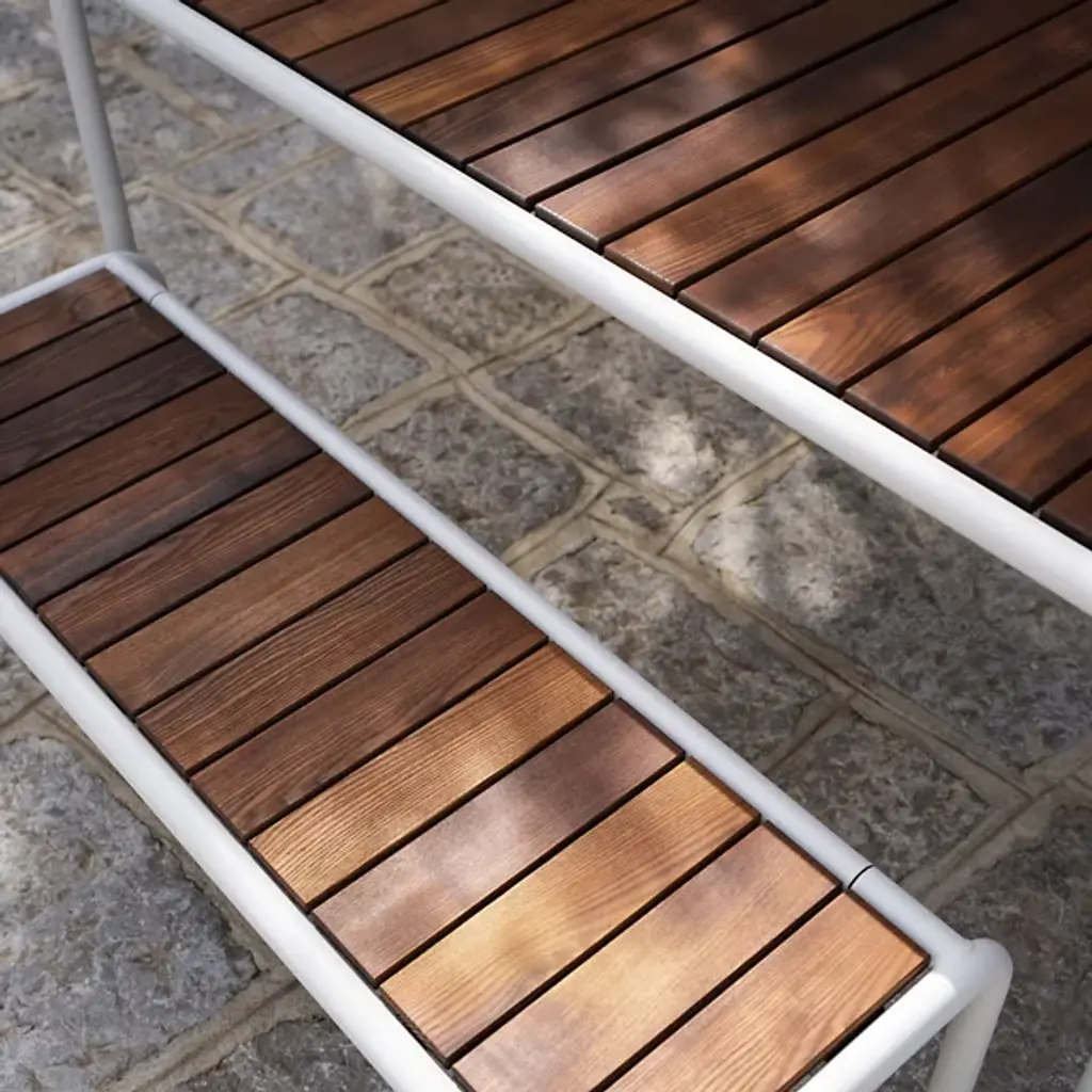 The Avanti Outdoor Bench from Houe is designed by Henrik Pedersen. This Scandinavian-style outdoor fixture is built to withstand the elements easily. It is composed of durable wood that is FSC-certified and sourced from responsibly managed forests, representing a commitment to sustainable practices. The wood is presented in a slatted arrangement for a nostalgic touch. Yet, the nicely curved framework of powder-coated steel reflects design influences seen in the present day.