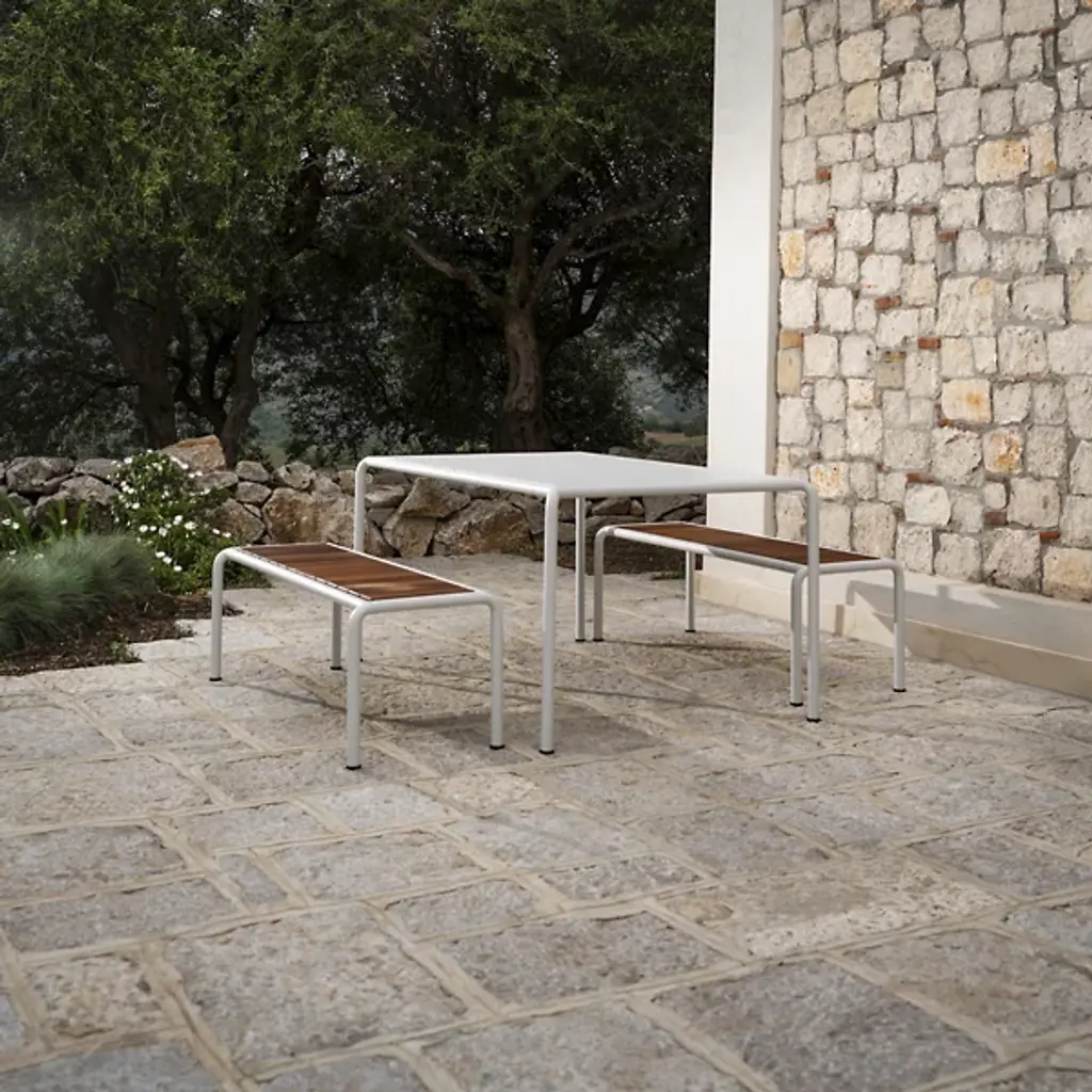 The Avanti Outdoor Bench from Houe is designed by Henrik Pedersen. This Scandinavian-style outdoor fixture is built to withstand the elements easily. It is composed of durable wood that is FSC-certified and sourced from responsibly managed forests, representing a commitment to sustainable practices. The wood is presented in a slatted arrangement for a nostalgic touch. Yet, the nicely curved framework of powder-coated steel reflects design influences seen in the present day.