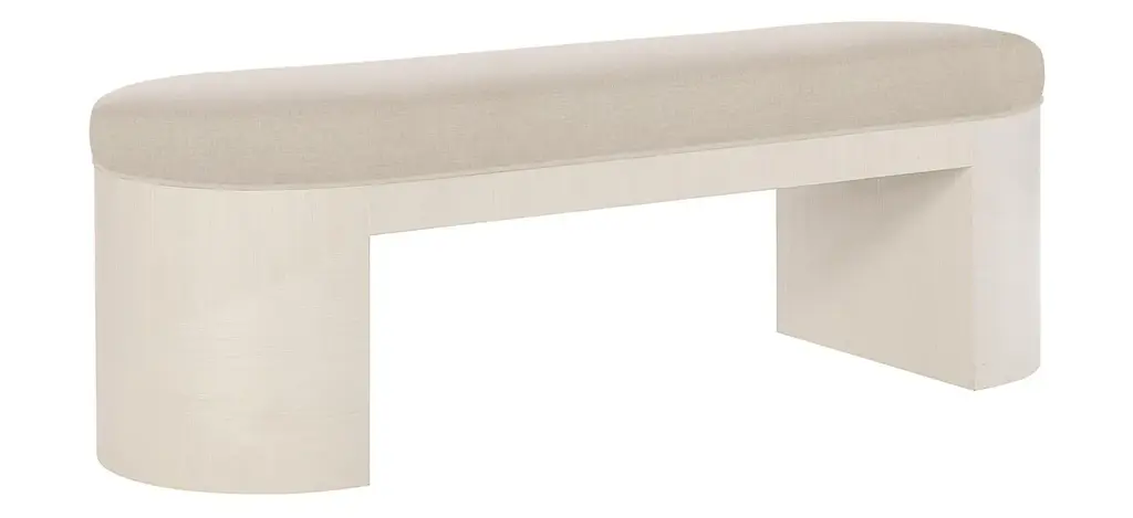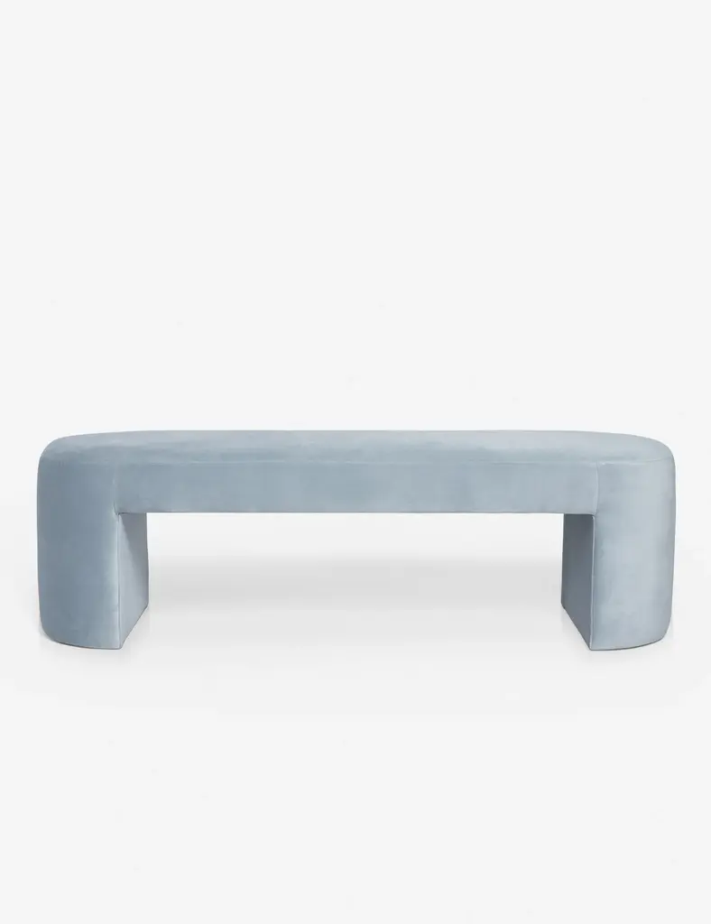 The Axiom bench features a solid stainless steel frame with curved, open end panels in a brushed silver finish. An upholstered box cushion makes the perfect surface or seat. With clean lines and a sleek form, this elegant bench offers glamorous transitional appeal.