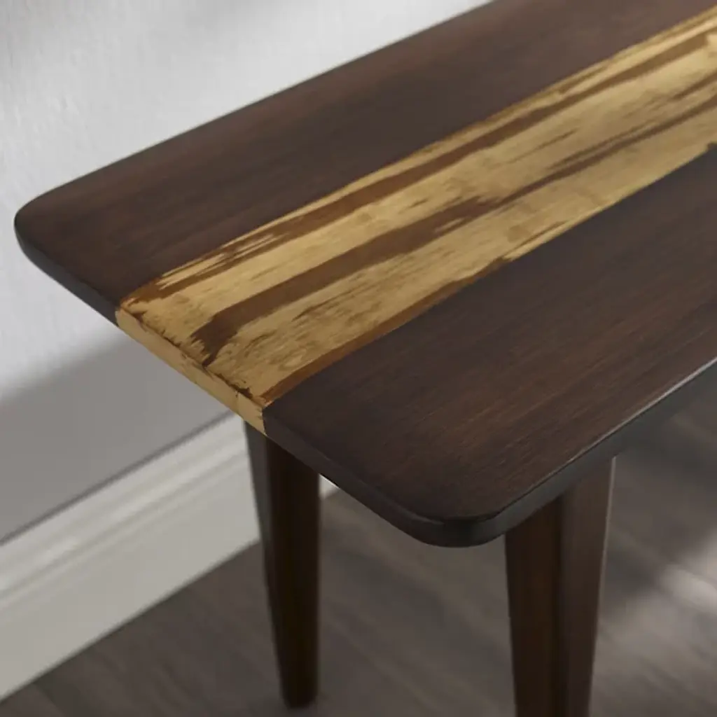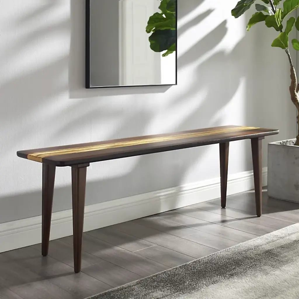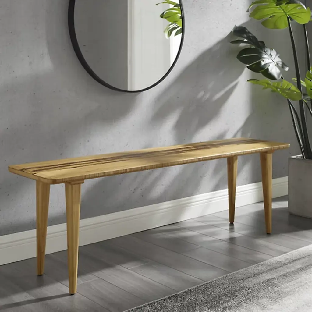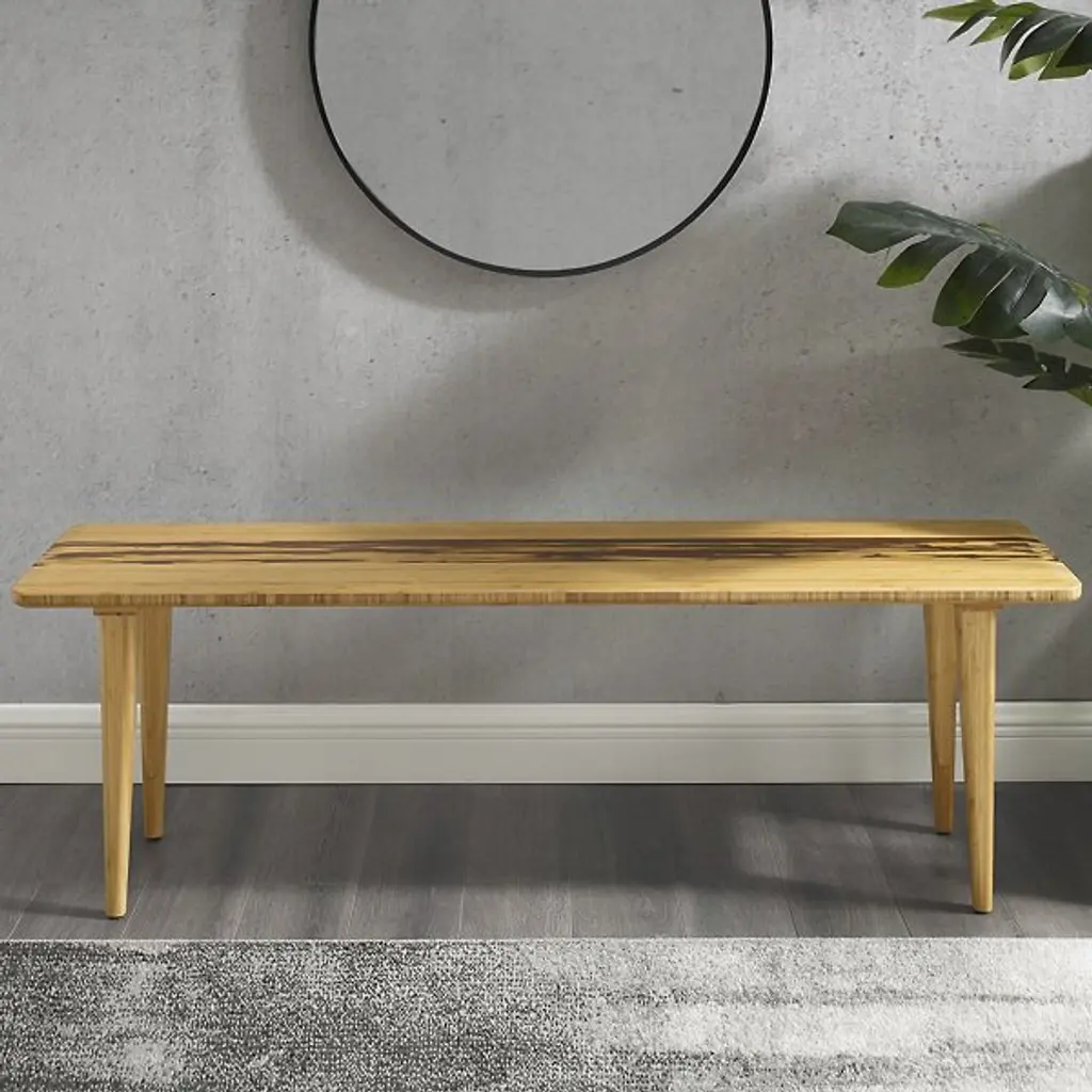 The Azara Bench by Greenington has a minimal, modern, and elegant design. Offering plenty of space to take a seat, this piece is made from an expertly crafted combination of earth-friendly, solid bamboos. A center accent of Tiger bamboo stands out, showcasing a mix of light and dark within its unique grain patterns, complementing the beveled edges and tapered legs of this bench as it makes a handsome addition to rooms.