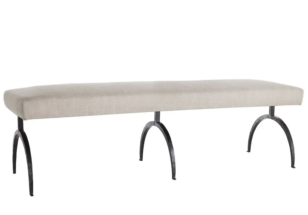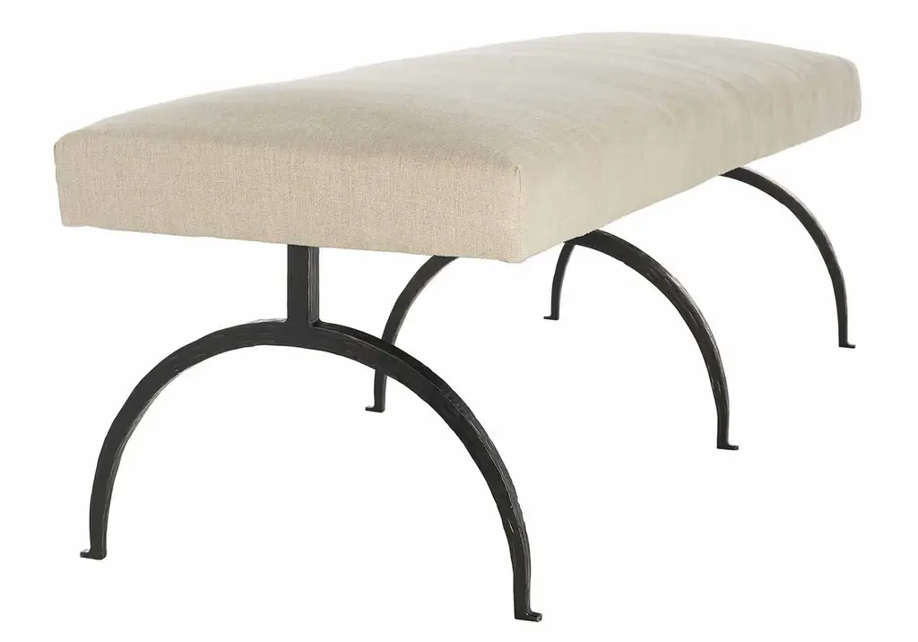 The Bahati boasts a handsome blend of mixed materials with its hand-forged iron frame complemented by a spacious upholstered bench. Tasteful and versatile, its curved black legs beautifully contrast its natural linen seat.