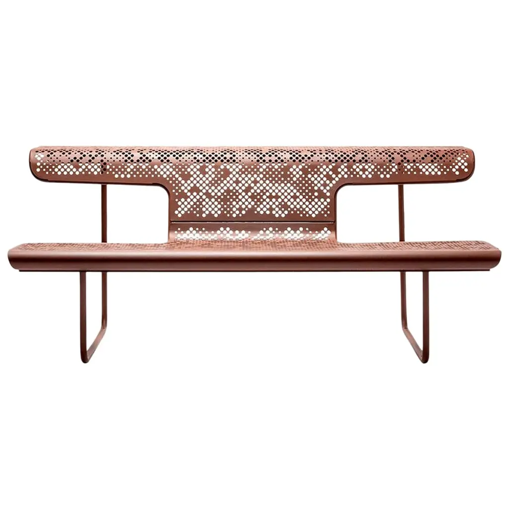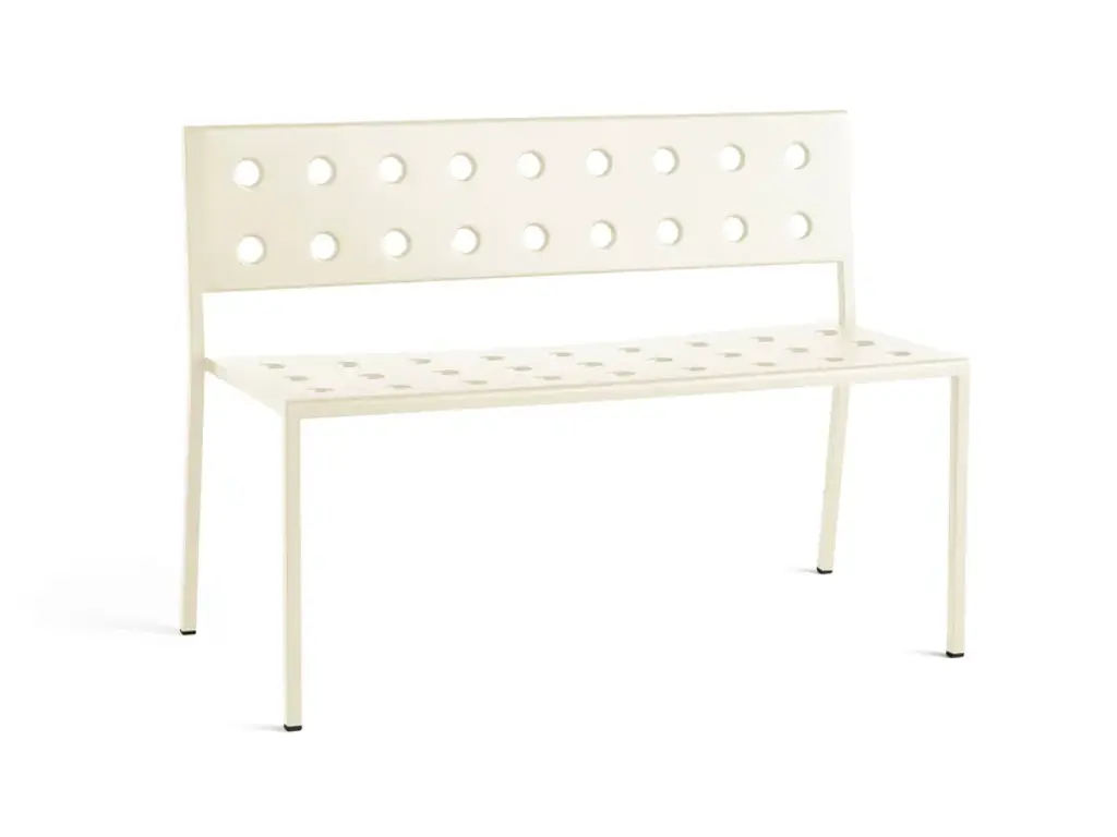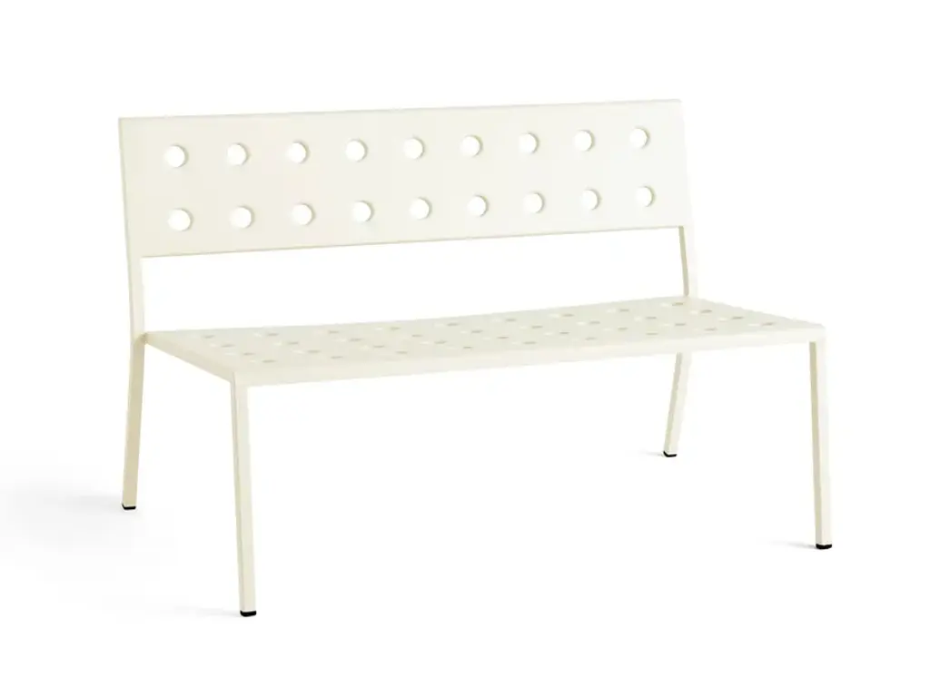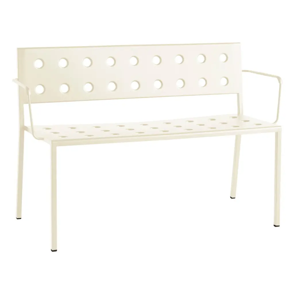 Balcony, designed by Ronan & Erwan Bouroullec for HAY, is a bench with backrest for the outside, with simple and square lines, characterized by holeson the surfaces that not only define the design but also reinforce the seat and back. The stackable design of the chair makes it suitable for all types of spaces, from small balconies and terraces to gardens and other larger outdoor areas.Made of powder coated steel with an outdoor primer for optimal strength and durability, Balcony is available in a number of different color options.Available in 5 finishes:- Anthracite power coated steel (RAL 9011)- Iron red powder coated steel (RAL 8015)- Desert green powder coated steel (RAL 140 50 05)- Dark forest powder coated steel (RAL 180 20 05)- Chalk beige powder coated steel (RAL 075 80 10)
