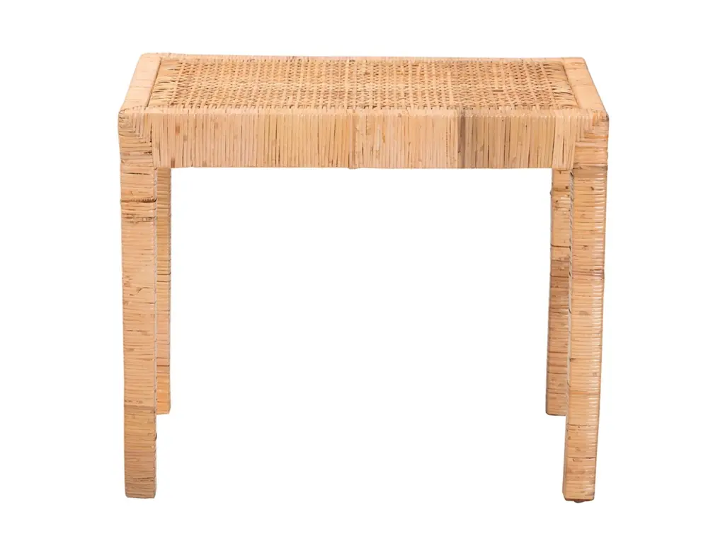 Enliven the ambiance of any layout with the exotic calmness of the Abelia accent bench. Made in Indonesia, this bohemian piece consists of a solid wood frame wrapped in natural rattan. The rectangular seat is comprised of woven rattan for a cozy embrace while lending a light, airy display. The Abelia requires minor assembly and features straight legs for excellent stability and support with crisp geometry. A modest silhouette engulfed in tropical bliss; the Abelia accent bench refreshes any interior. Due to the nature of the natural materials used in this product, it may have variations in areas such as, but not limited to, color, pattern, grain and texture. The hair-like strands of rattan/rattan-fiber are common due to nature of the material.