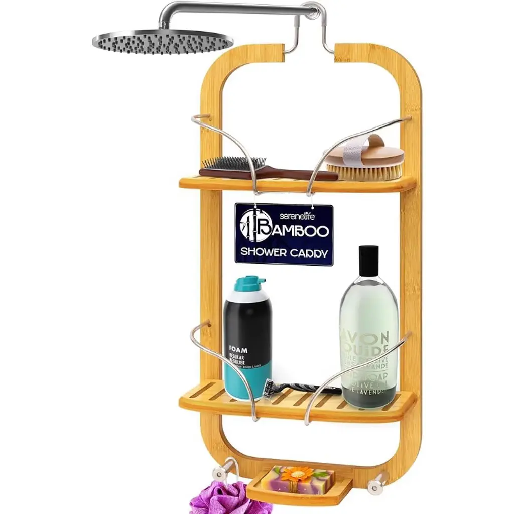Bamboo Corner Shower Bench 2 Tier Waterproof Shower Bench - 10.11"d X 15.86"w X 17.16"h - Bamboo - 10.11"d X 15.86"w X 17.16"h