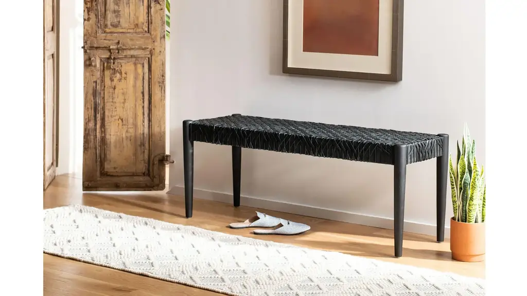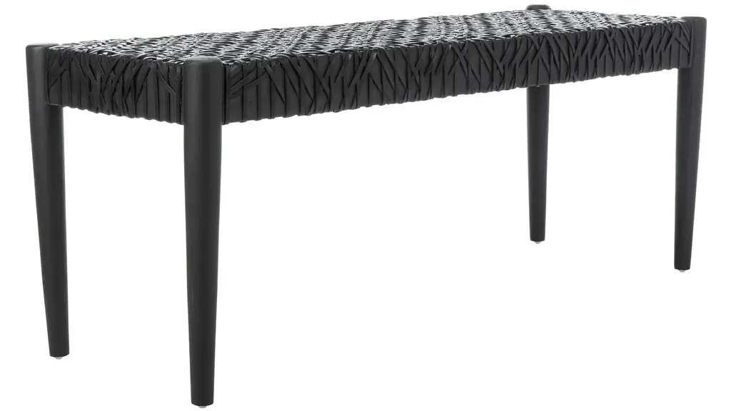 Highlighting the best of contemporary design, the clean lines of this Bandelier Bench are given a couture upgrade with chic designer details. Bandelier's interlaced white cowhide leather seat pairs beautifully with its natural-finished teak, giving any interior enticing visual intrigue.