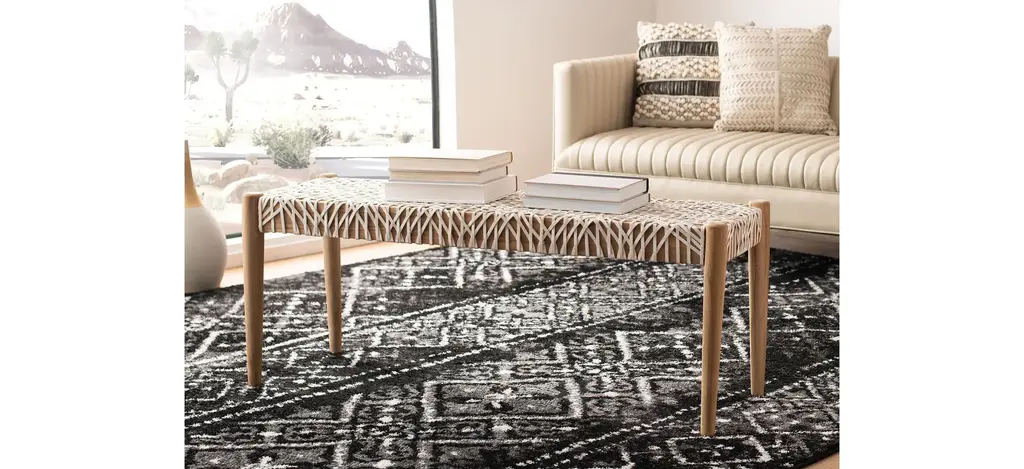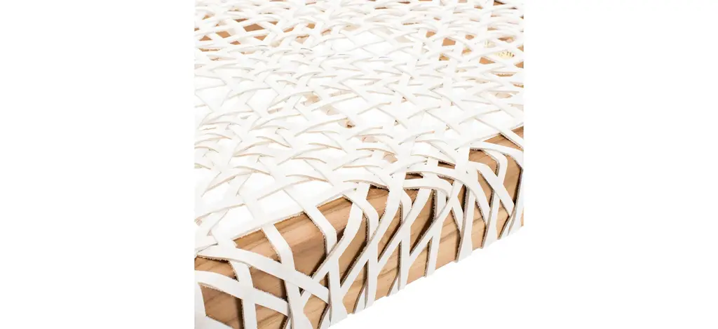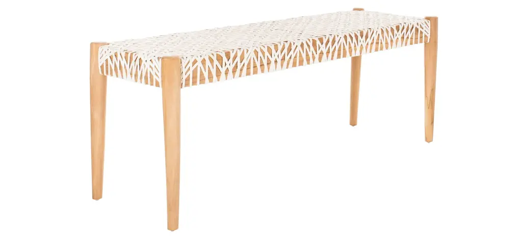 Highlighting the best of contemporary design, the clean lines of this Bandelier Bench are given a couture upgrade with chic designer details. Bandelier's interlaced white cowhide leather seat pairs beautifully with its natural-finished teak, giving any interior enticing visual intrigue.