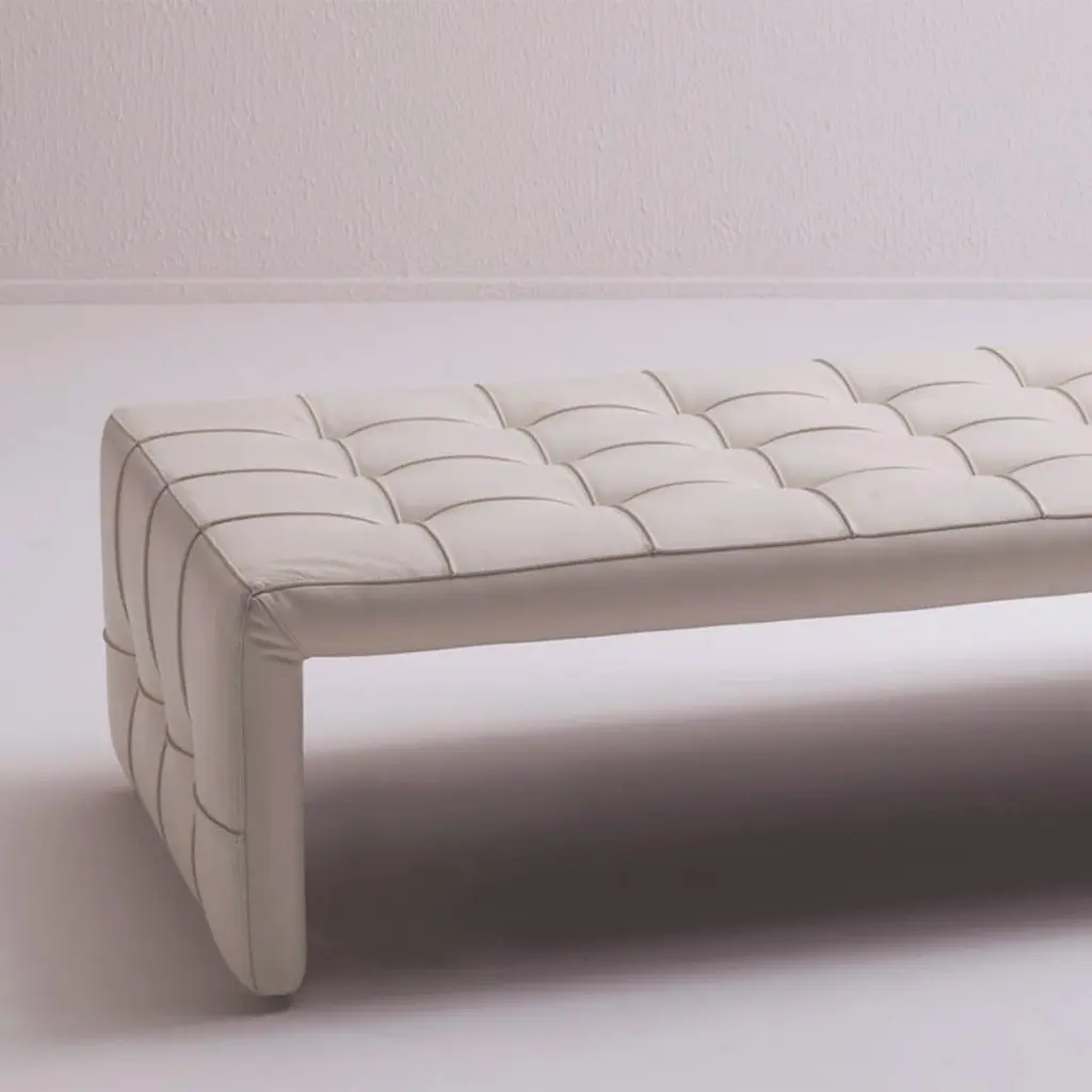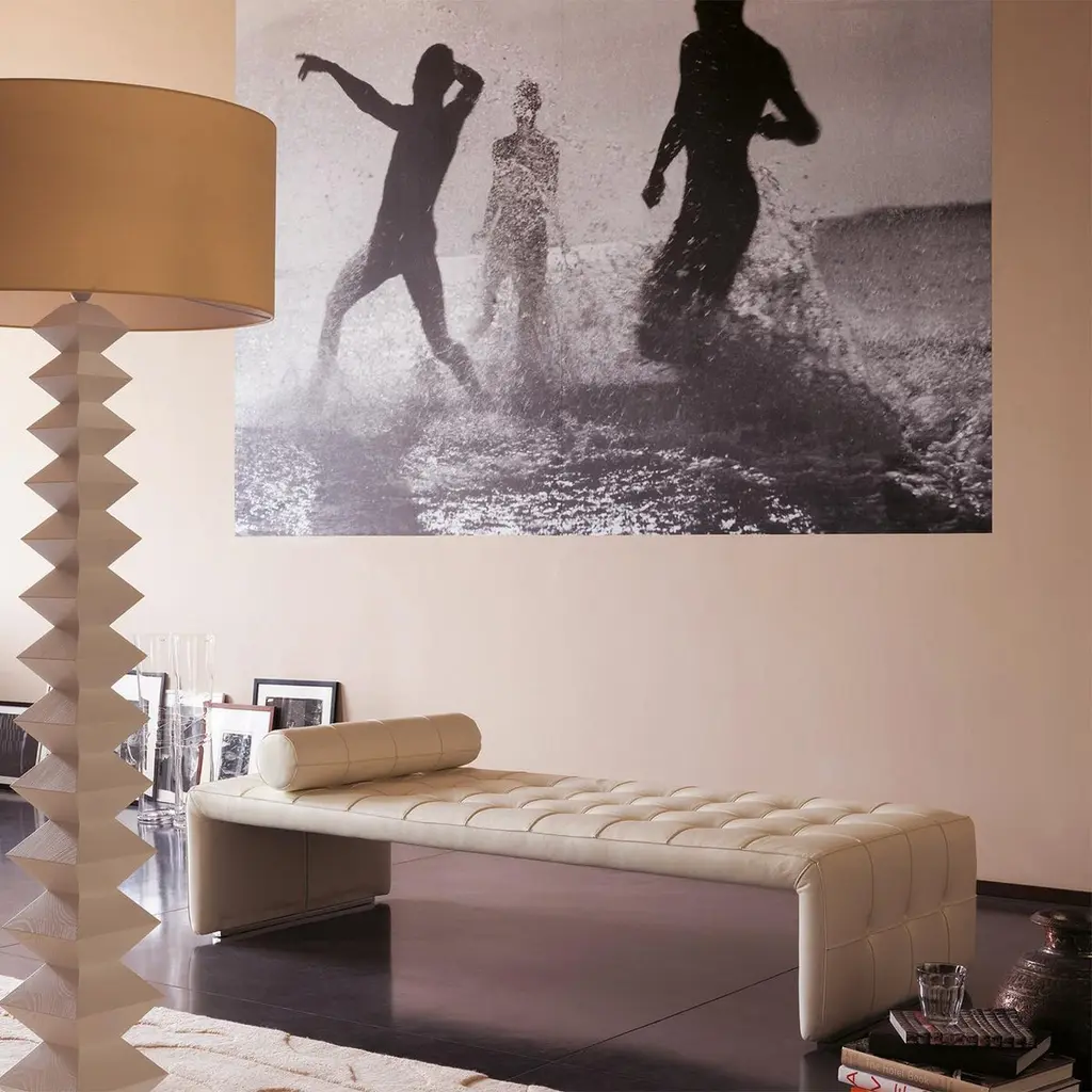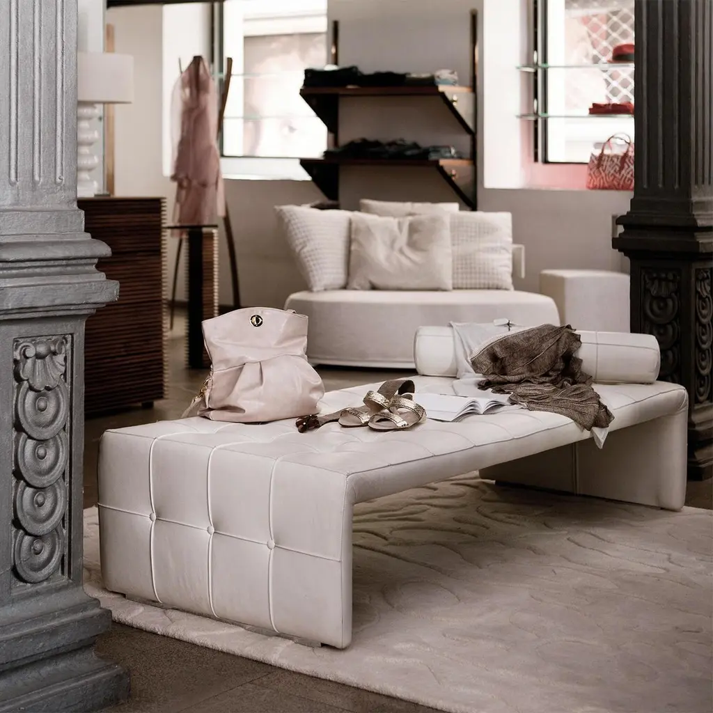 Bench Barney with solid wood structure upholsteredand covered with genuine italian leather CAT. Leather,in white cream finish. Cushion included. Also available with other leather colors, on request.