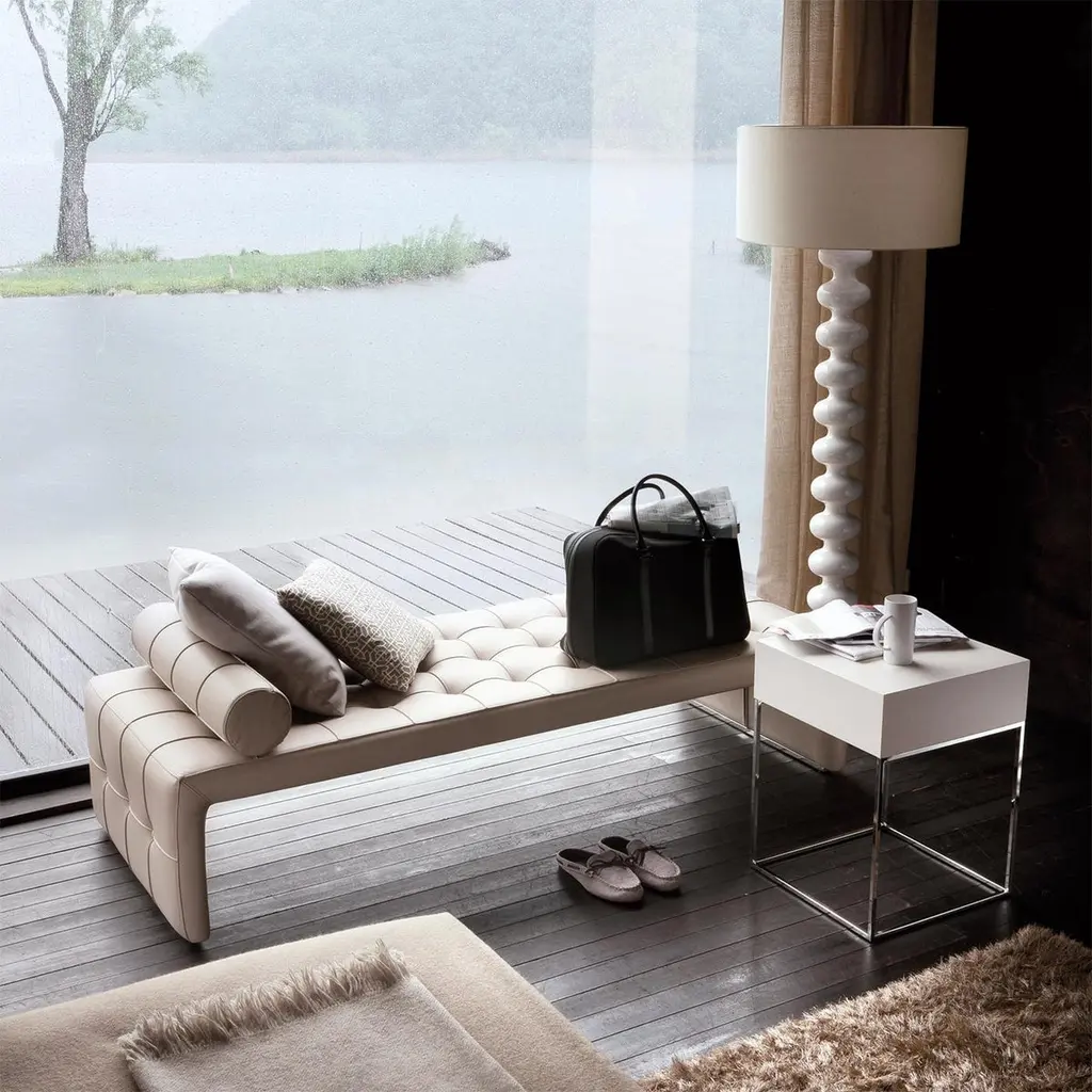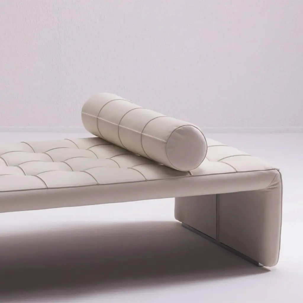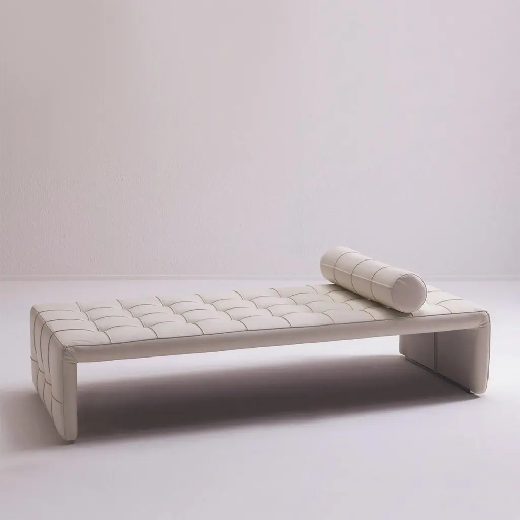 Bench Barney with solid wood structure upholsteredand covered with genuine italian leather CAT. Leather,in white cream finish. Cushion included. Also available with other leather colors, on request.