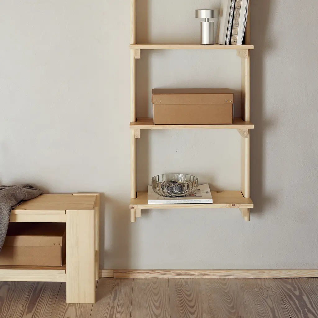 Inspired by architecture and traditional woodworking, the Form & Refine Beam Wall Shelf 3 is one of the most beautiful and practical wooden shelves you can find. The attention to detail and the quality craftsmanship set the Beam series apart from others, from the rounded details of the shelves that “hug” the frame to the smooth finish and matte lacquer that put the textures of the pine wood in the best light. Designed with 3 shelves, this storage and display unit is perfect for kitchens, dining areas, living rooms, and home offices. You can use it for bowls and plates, books, decorative objects, and office accessories. Additionally, the Form & Refine Ordinary Box fits the shelves perfectly. The Form & Refine Beam Wall Shelf 3 is made to last from eco-friendly, FSC-certified solid pine wood.