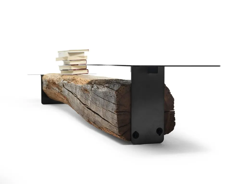 "Designed by Damien Gernay for Mogg, Beam is a multifunction low table made by an old oak beam, equipped with lead-painted metal top.Beam is a coffee table which has a young and dynamic design. All products of the beam collection were born from an indomitable creativity. The rustic appearance of wood, deliberately not treated, allows exploiting its full expressive value. The Beam uses are multiple due to its versatile nature that lends itself both in a bedroom or in a contemporary living area. The Irregularities of this ancient wood have to be considered of quality and not a defect, which thus characterizes each individual piece."