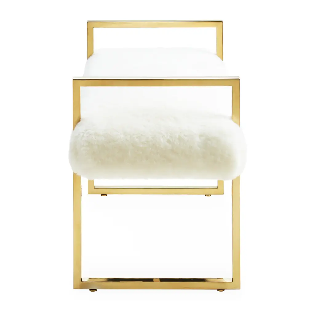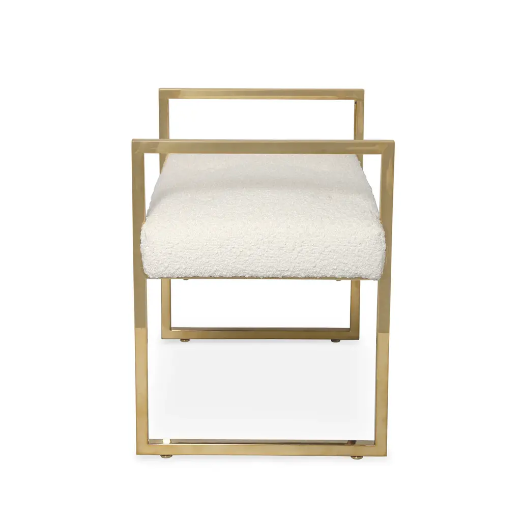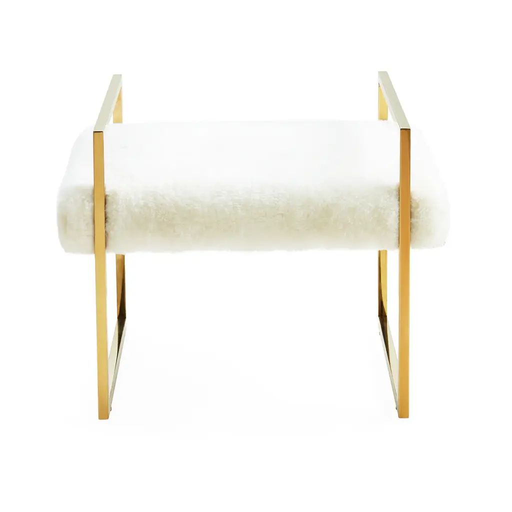 New Traditionalism. Formal meets fresh, our Beaumont Bench features an architectural yet airy base cradling a cushion in your choice of polished ivory bouclé, cozy sheepskin, light and luxe celadon velvet, bold burnt orange velvet, or a posh pale lavender velvet. Park this petite seat in front of the fireplace or opposite an armchair.
