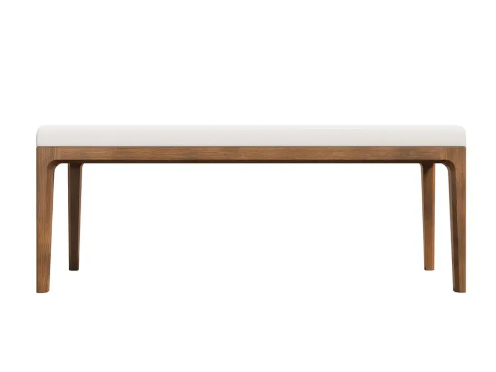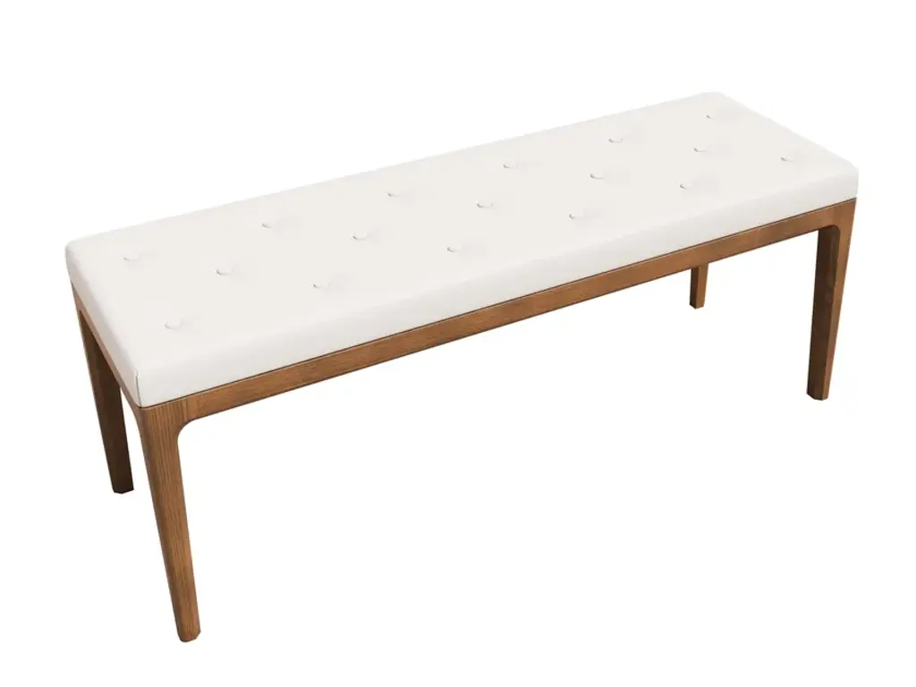Upholstered bench made of ash wood. The Bellagio bench is an elegant and functional piece of furniture. The essential lines and attention to detail define this piece of furniture, making it suitable for multiple spaces. The soft cushion is worked with button insert and can be customized with different fabrics. The frame, made of ash, is solid and slender with rounded corners to match the other furnishings in the collection.The BELLAGGIO collection features strong and refined details, such as chamfers and taperings, adding simplicity and appeal. Angled bevels make the structure thinner and lighter, delicate though resistant. These are extremely versatile pieces, apt to furnish a variety of environments, from sober and sophisticated rooms to the most glamorous and exclusive spaces. Their essential shapes, interpreted by contemporary timeless design, are enhanced by the highest quality craftsmanship of leather and wood.