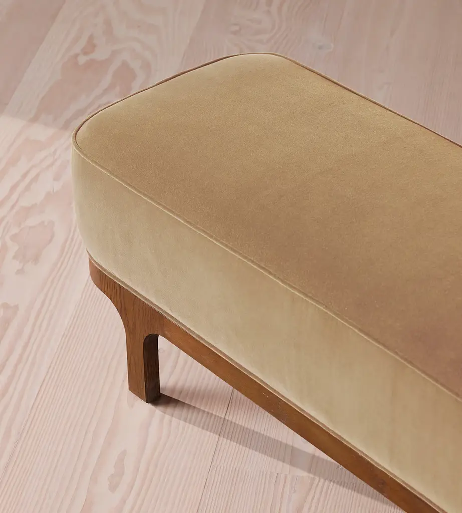 An extension of our Belsa bed range, this bench is ideal either in the hallway or at the end of the bed as an additional place to rest. A feather-wrapped cushion seat provides extra comfort, while rich velvet upholstery and a solid oak frame ties in with the scheme.