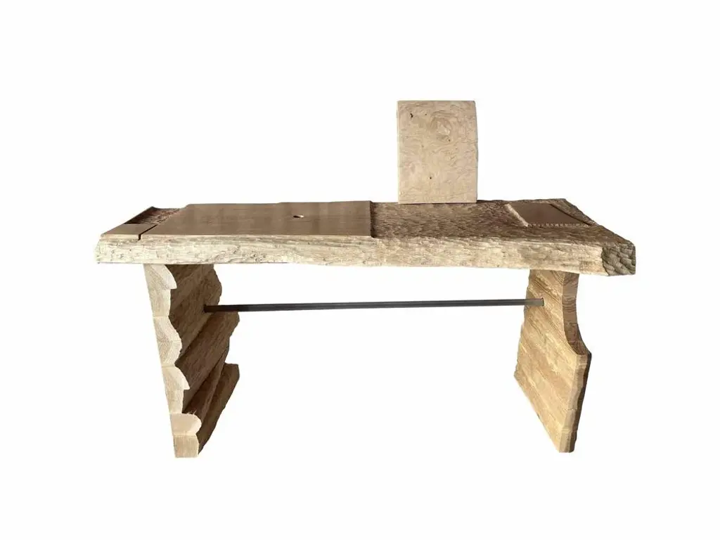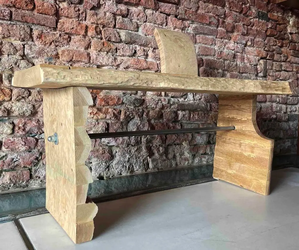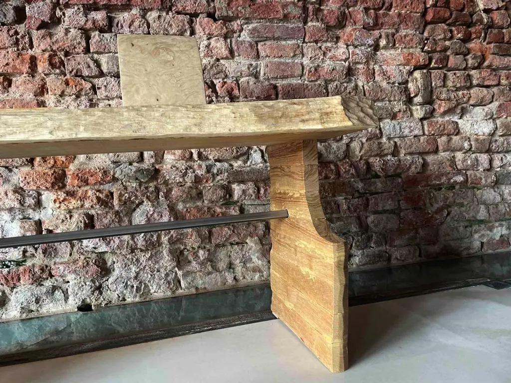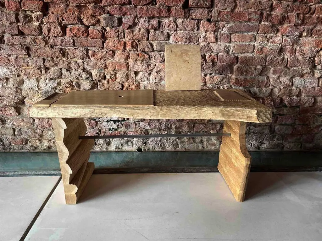 Bench by Pietro Meccani. Artistic object in carved oak wood with ash root element. The bench was designed in 1995 and is re-proposed by the Meccani company. Dimensions (cm): 95 x 47 x h 70.5 Signed by Maker