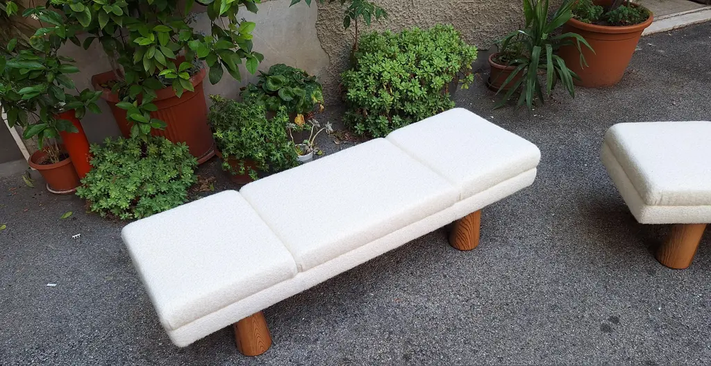 Bench in Light Wood and Mohair Wool Upholstery, 2000s, in Flawless conditions. Designed from 2000