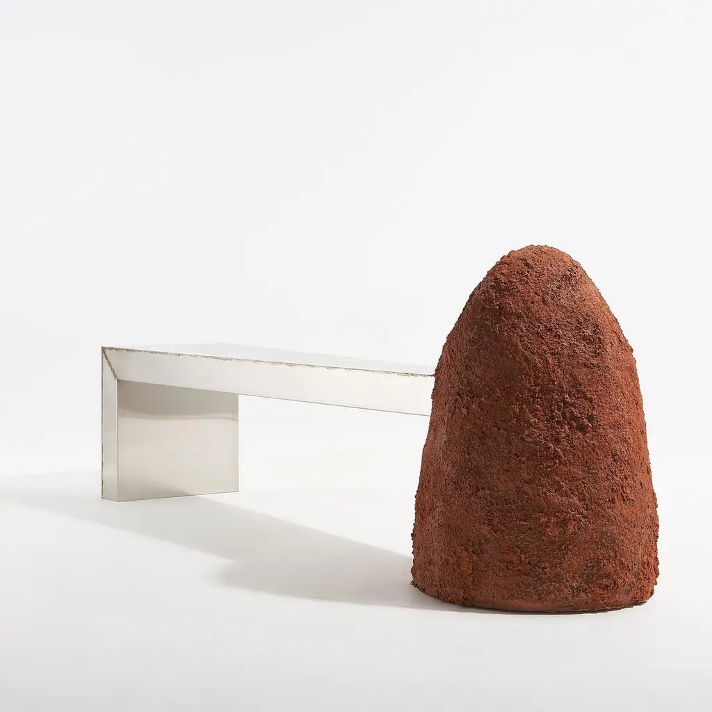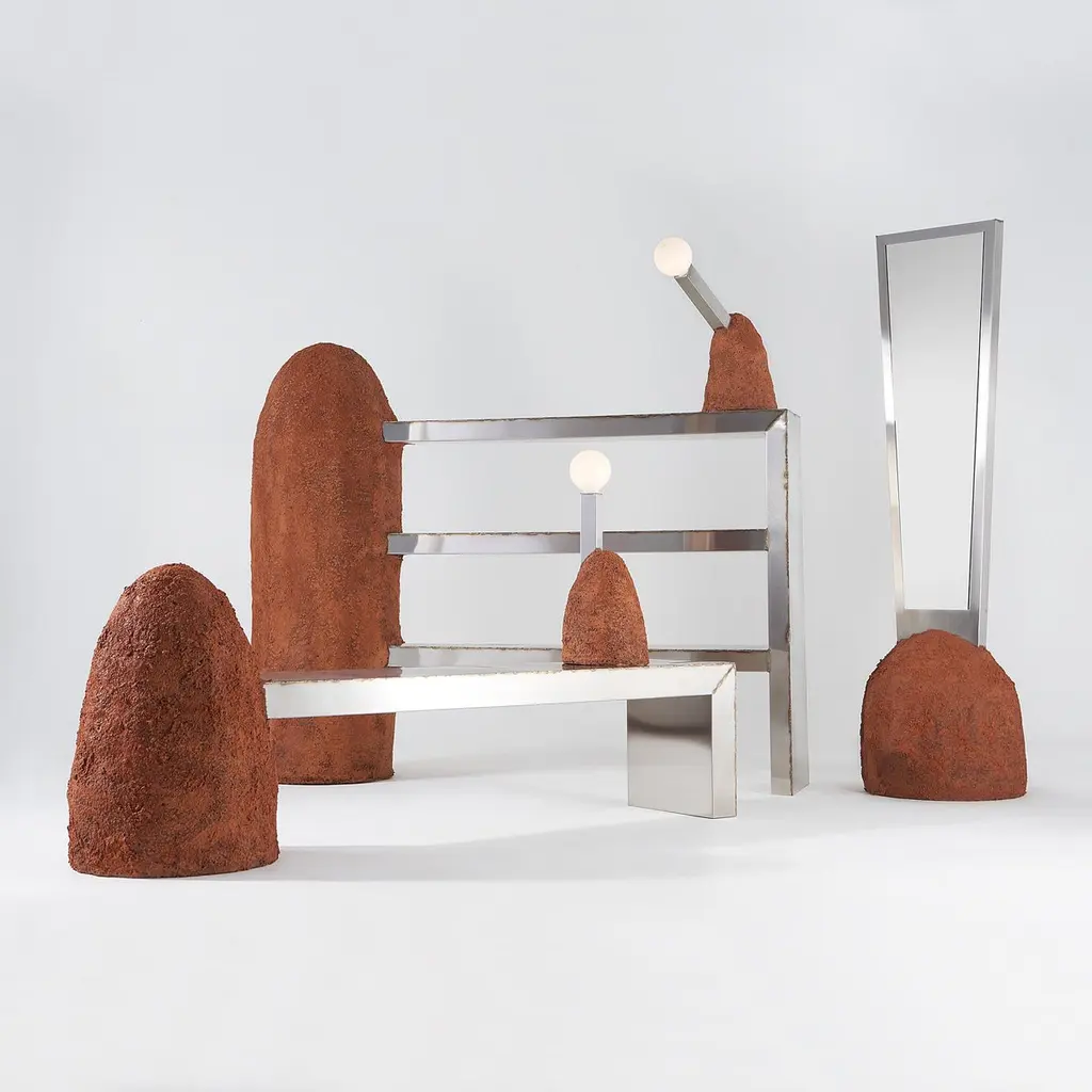Inspired by quite common natural elements in our region, Murundu speaks of affective landscapes, our rural nature and our profound connection with the countryside. At the same time, it is about the presence of the big city in our lives. An unavoidable relation, almost imposed, sometimes brute, but that can also be necessary and inspiring. Dirt volumes that refer to those built by the insects at fields and meadows, here live along with the cold urban steel of the imperfect and invasive human constructions.