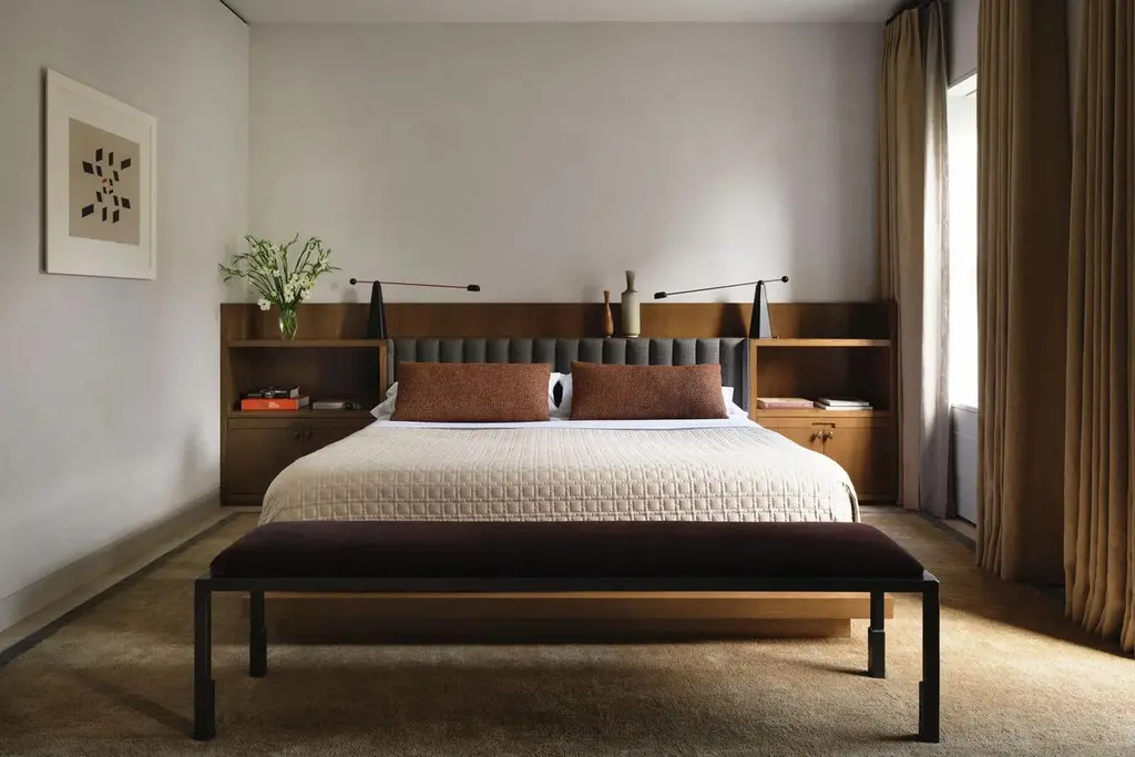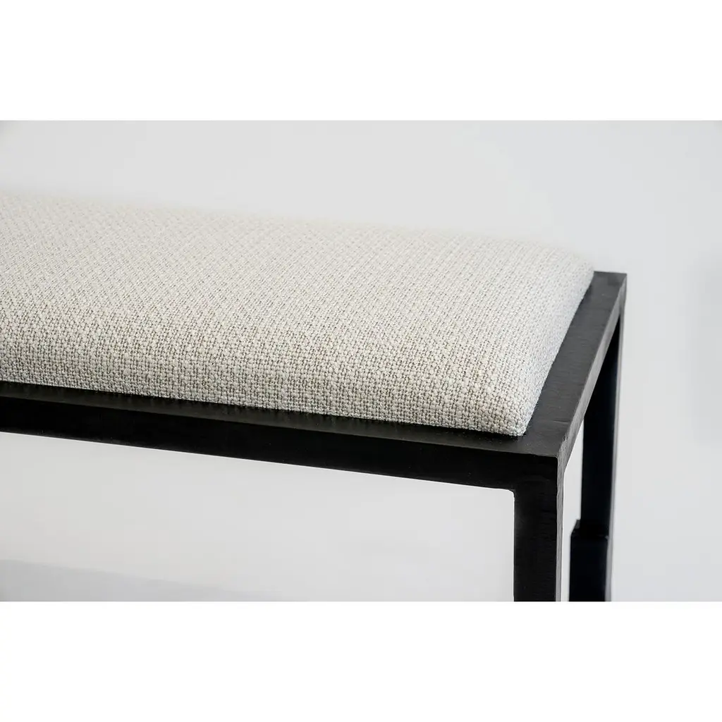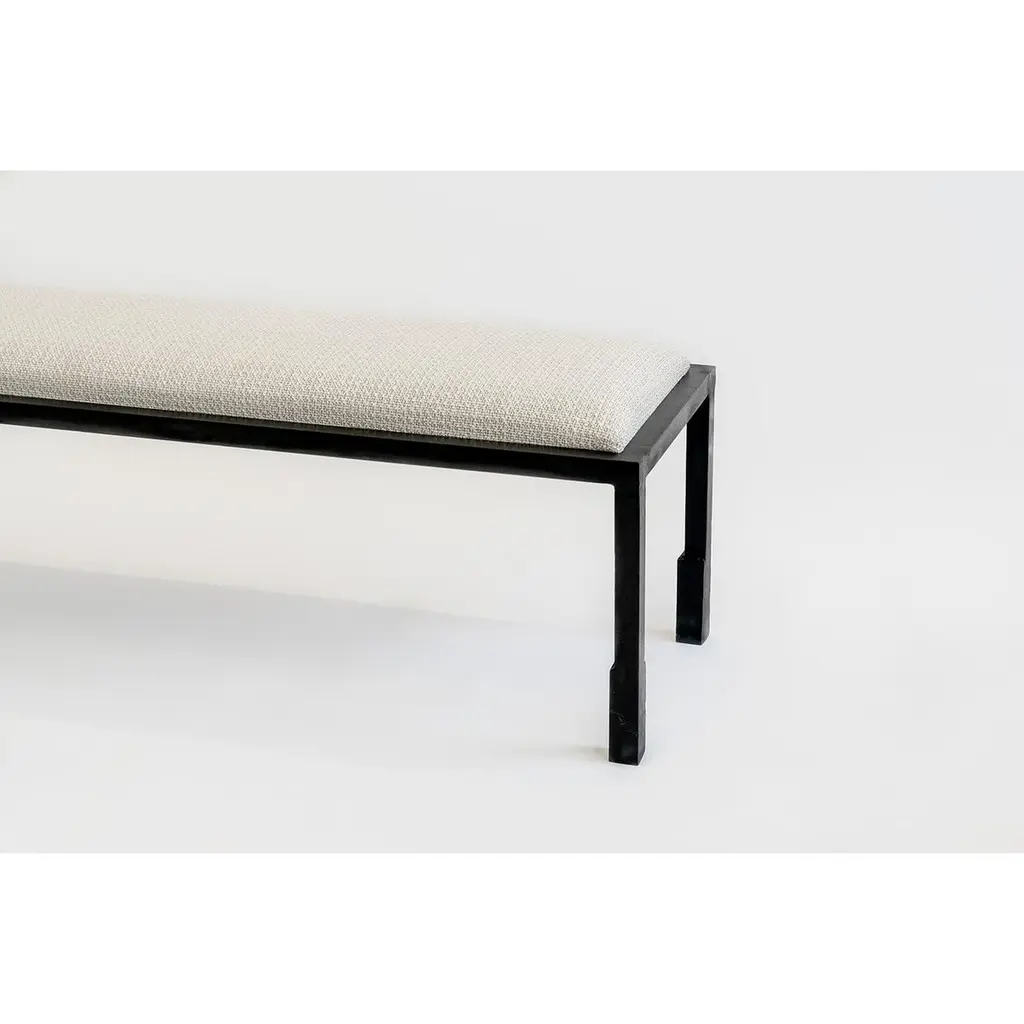BENCH NO. 1J.M. Szymanski d. 2020Beautifully designed textiles and blackened steel are combined to bring elegance to the simplicity in this design. Pricing based on COM. Custom sizes available.Our products are fabricated and finished by hand, so variations in size, shape, and patina color are a natural result of this process. Tooling marks and surface scratches are part of the character of many finished pieces. All products are sealed with oil and wax, which, over time, are not impervious to moisture. Our blackened steel pieces installed outside or in areas exposed to moisture indoors, especially in marine environments, will rust. Condensation from hot and cold drinks will leave rings on blackened steel table tops. Coasters or placemats can protect the finish. Periodic maintenance of blackened steel items may be required.