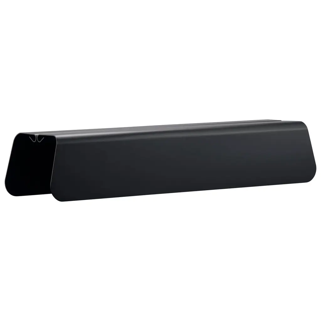 Part of a series of indoor-outdoor benches that can be combined together in infinite compositions, this bench is a testament to minimalist elegance. Marked by essential, geometric lines, it is crafted of black-finished bent steel resting atop an internal structure of solid, welded steel. Showcasing a unique and clever design, the two pieces making up this bench curl up on top, allowing to combine together other benches by inserting horizontal metal bars inside the furrows. Other colors and smooth or textured finishes are available, please ask the Concierge for options.