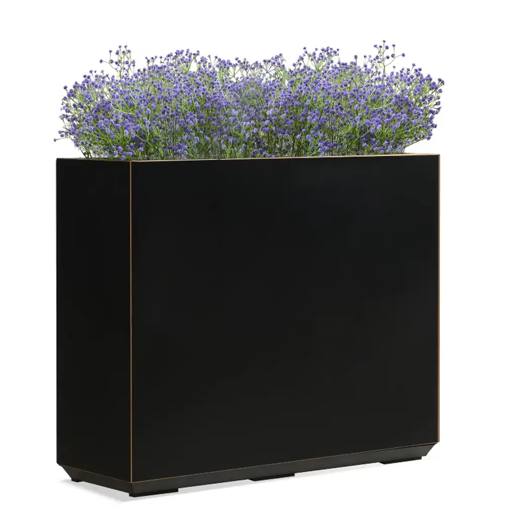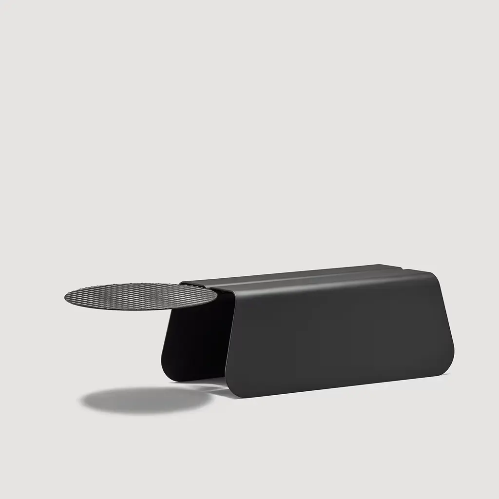 Minimalist and essential, this bench boasts a sleek and elegant silhouette marked by rigid geometric lines merged in perfect symmetry. Exquisitely crafted of black-finished bent steel with an internal structure of solid, welded steel, the two pieces making up this bench curl up on top, a clever design feature that allows for combining with other benches in infinite combinations by inserting horizontal metal bars inside the small furrows. Suitable for indoor and outdoor use, this bench is available in other colors and with a smooth or textured finish, ask the Concierge for options.