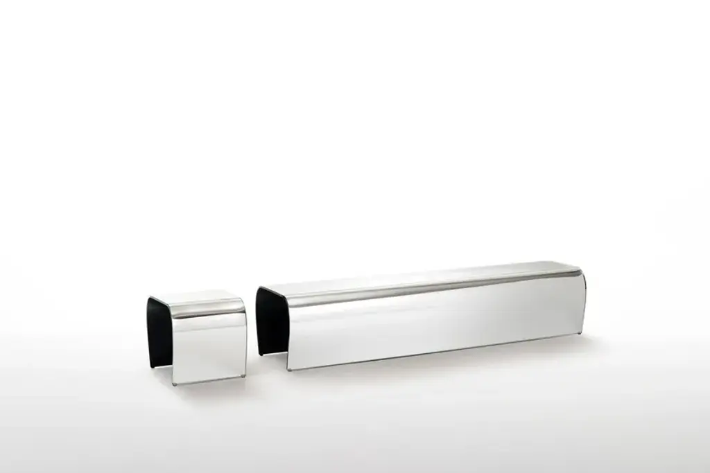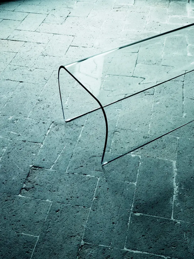 BENT GLASS BENCH is a bench made entirely of transparent crystal designed by Naoto Fukasawa for Glas Italia.Bench and stool with an aspect of natural simplicity, made from shaped and curved 12 mm thick transparent extralight glass.The particular glass curvature and a special tempering process endow the glass with an extraordinary load resistance.It is also available a version in silver glass with a precious appearance.