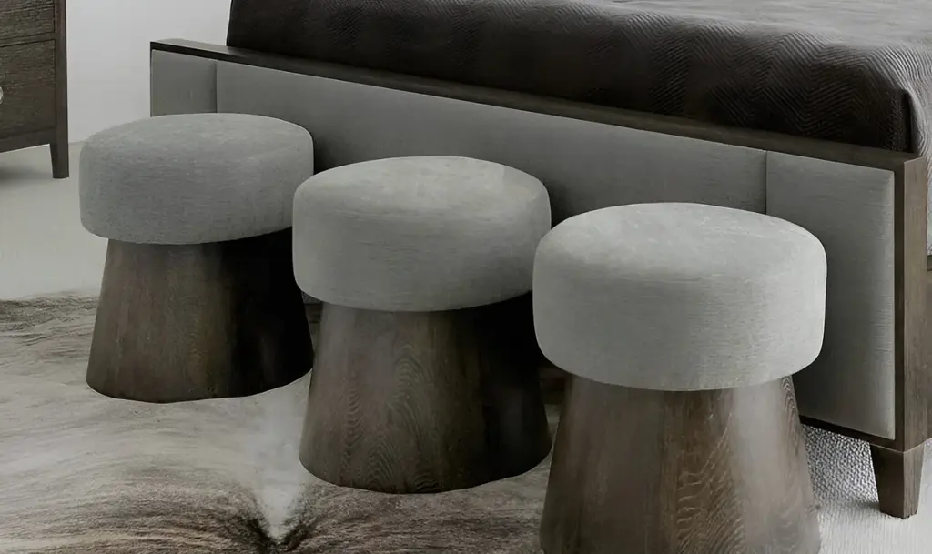 Didn't you gaze for extra seconds looking at this masterpiece? We got you. Thanks to Bernhardt Linea's unique round bench design, it's sure to stand out with its unique design.This wooden bench features a comfy, fabric-upholstered seat thatŐs as cozy as it is chic. You will feel instant comfort when seated on it. The conical-shaped base is what makes this bench so special. And those cool cast wood grain patterns add a unique and modern touch to this bench, making it more elegant.Worried about stability? No problemŃthe adjustable glides make sure it stays steady on any surface. Whether you need extra seating in the living room, a stylish accent in the entryway, or a chic addition to your bedroom, the Bernhardt Linea Round Bench fits right in and looks great doing it.
