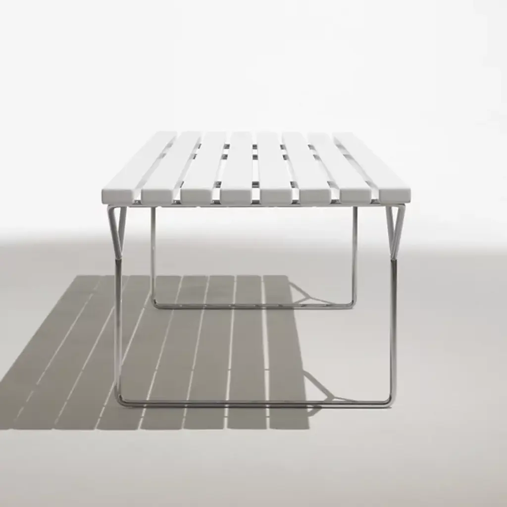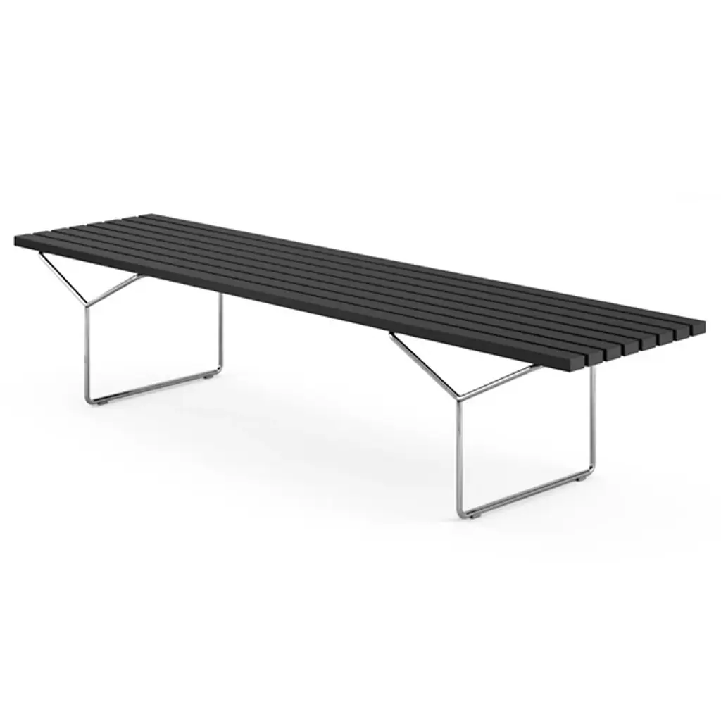 Create a sense of simple elegance in any room with this slatted bench from Harry Bertoia's namesake 1952 collection. More than five decades from its inception, the minimalistic design remains as trendy and versatile as ever. Its sculptural steel base sports a brand of delicacy that belies its strength and durability – a rugged and long-lasting piece of furniture yet perfectly minimalistic at the same time.