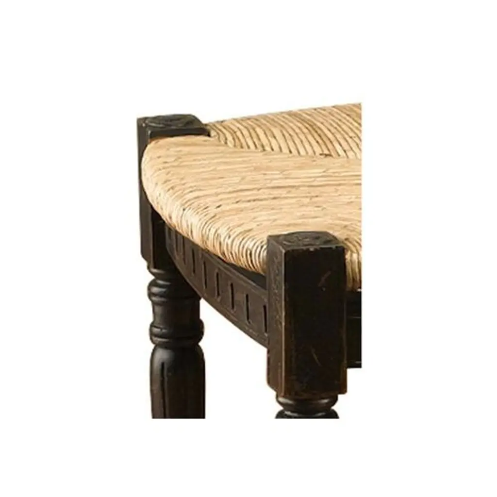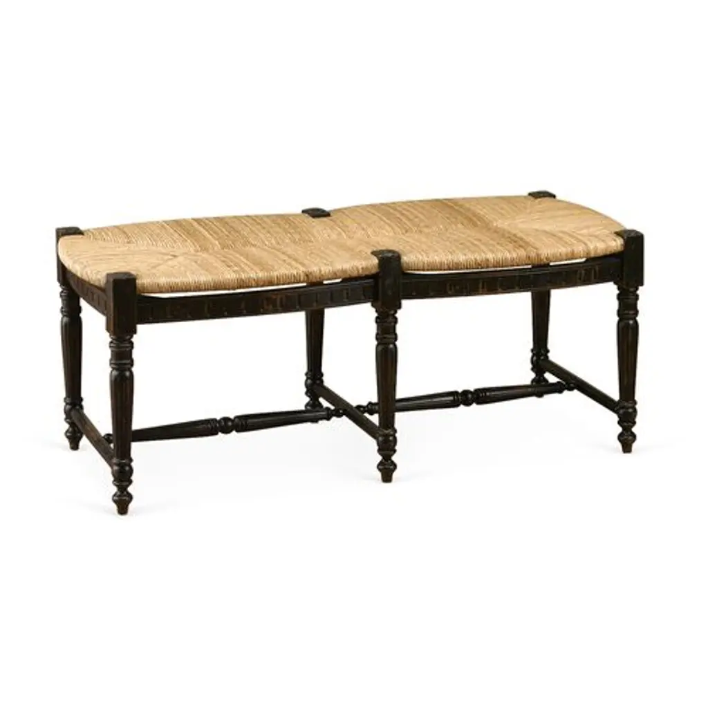 This handcrafted bench features a woven rattan seat and beautifully detailed frame made of plantation-grown mahogany, a hardwood prized for both its durability and its beauty.