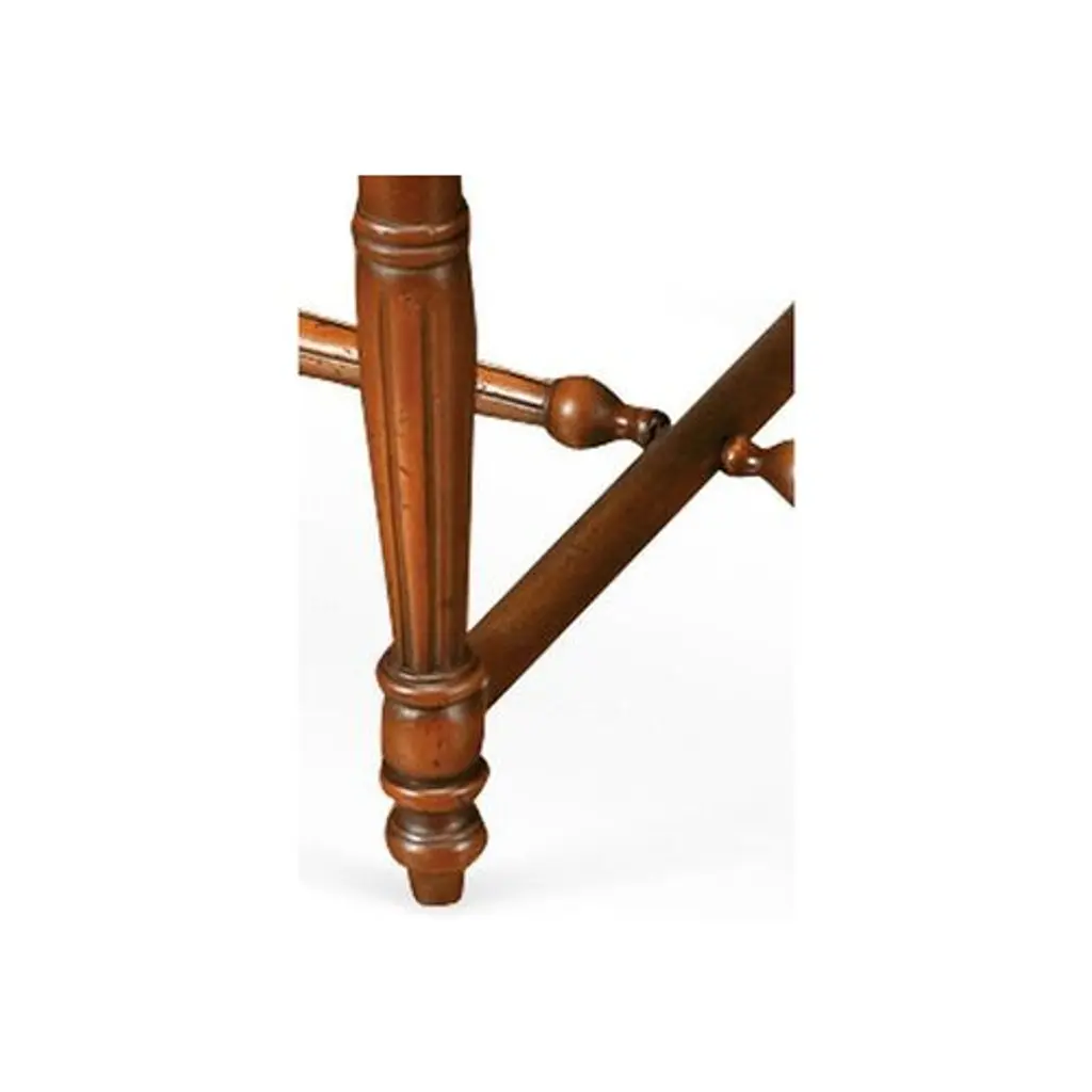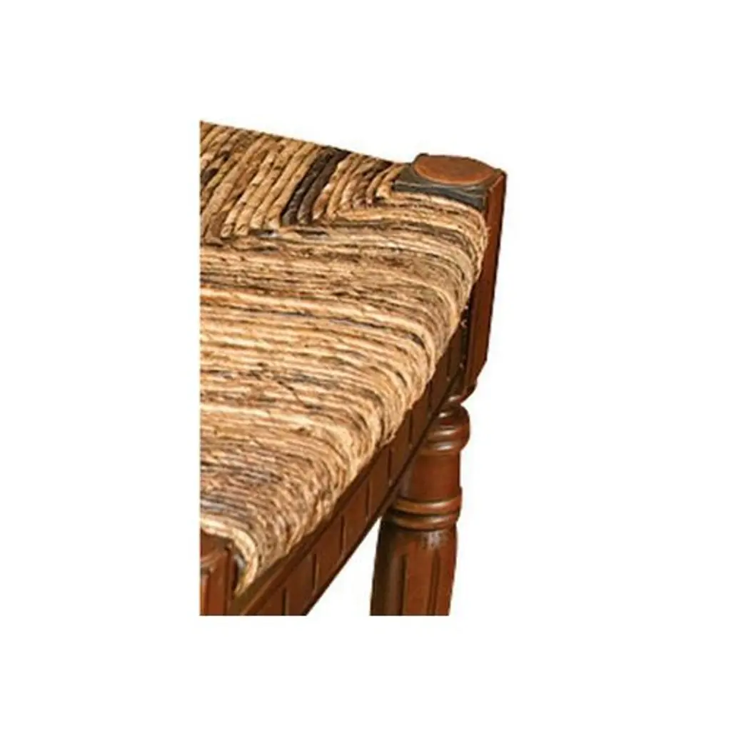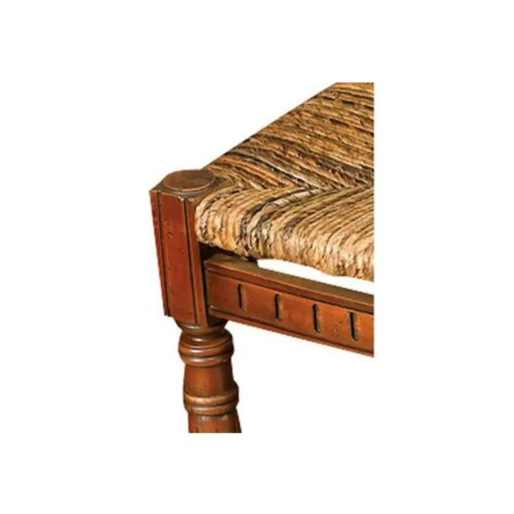 This handcrafted bench features a woven rattan seat and beautifully detailed frame made of plantation-grown mahogany, a hardwood prized for both its durability and its beauty.