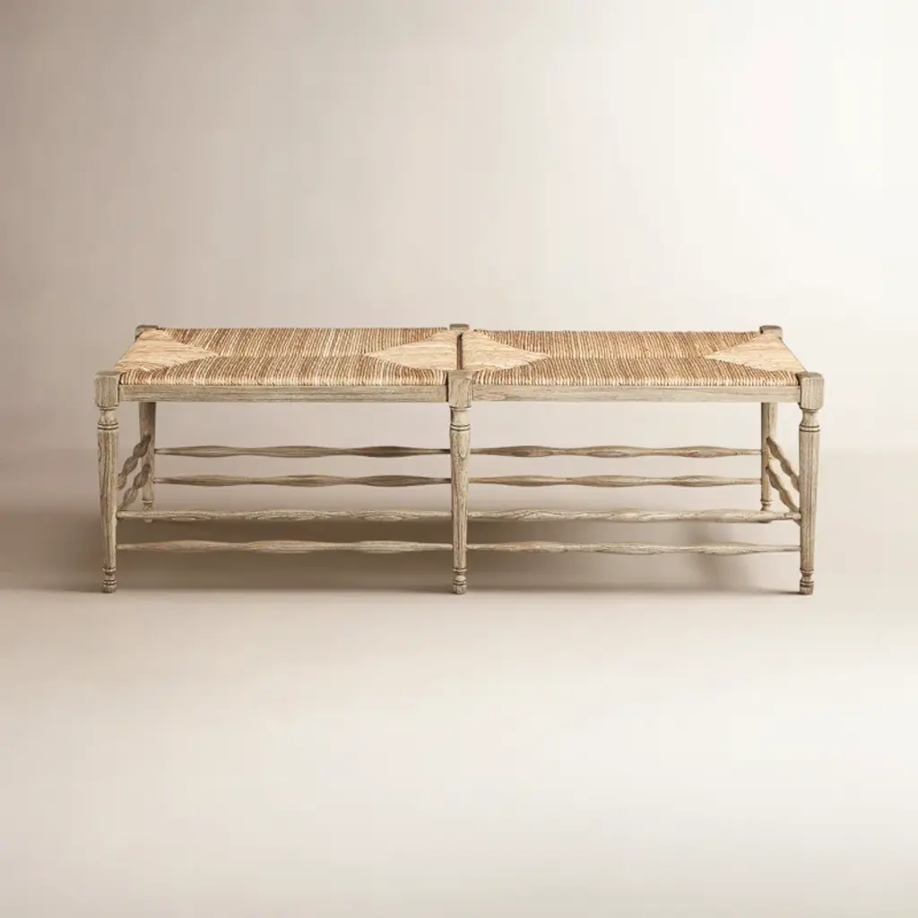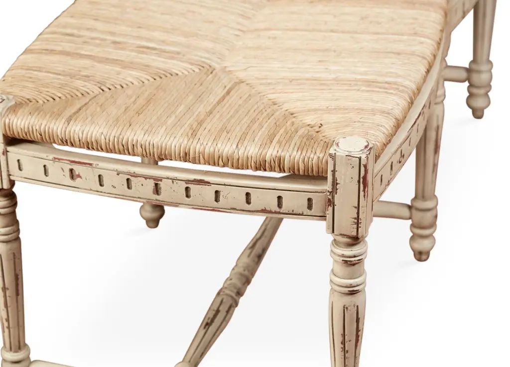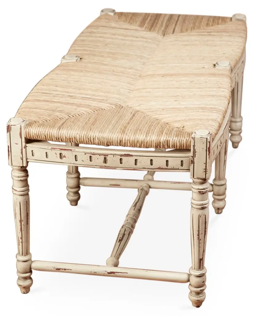 Perfect for the entryway or beneath a window, this handcrafted bench has that country-cottage look that makes any home feel warm and inviting. The frame is made of plantation-grown mahogany, a hardwood prized for both its durability and its beauty.