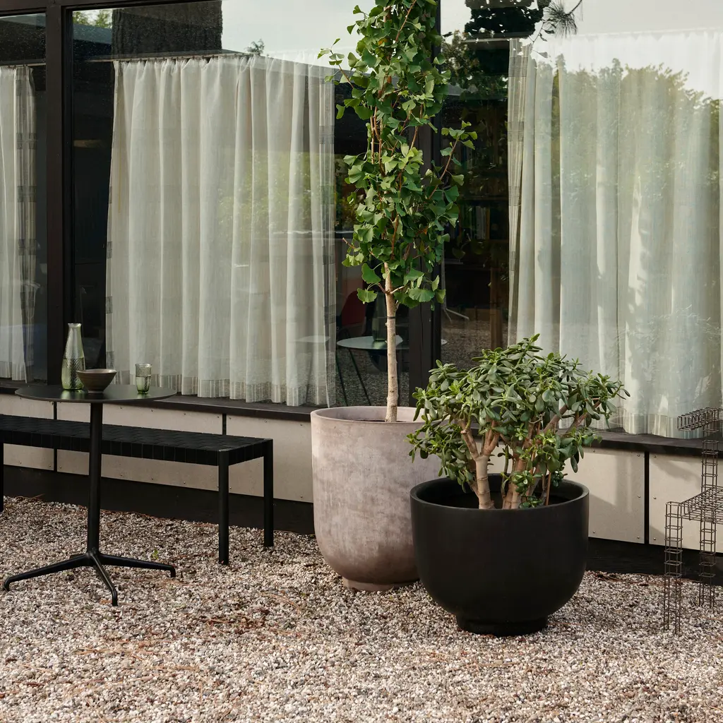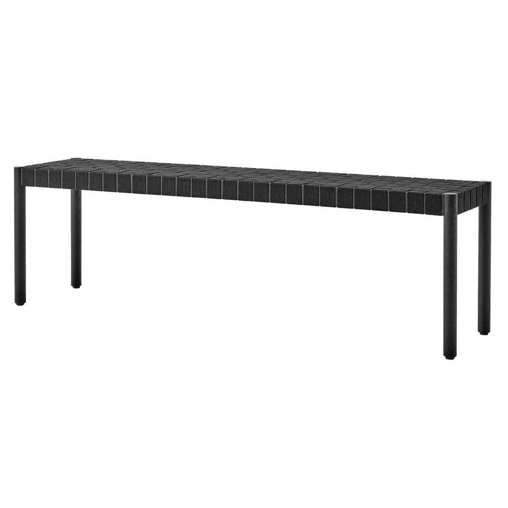 Named after the Betty Nansen theater in Copenhagen, designers Thau & Kallio fashion a handsome solid-oak bench with a woven seat made from exposed webbing. Hand-crafted from natural fibers, the linen webbing complements the lacquered wood available in black, twilight or maroon. From Copenhagen maker &Tradition, the bench comes in a choice of 2 lengths and is crafted from sustainably sourced timbers.