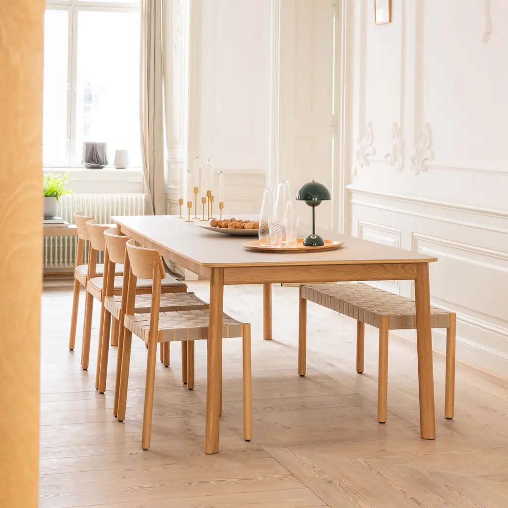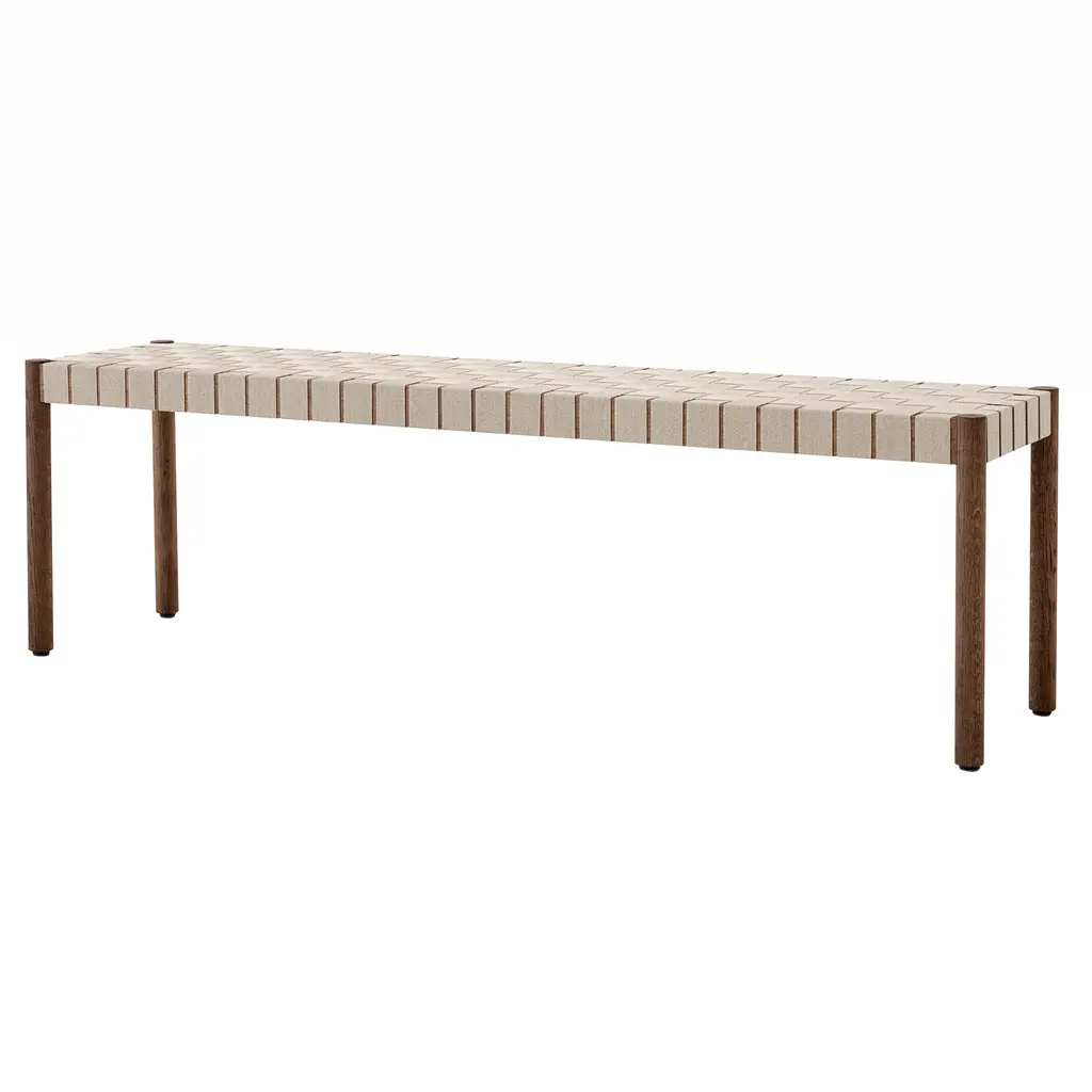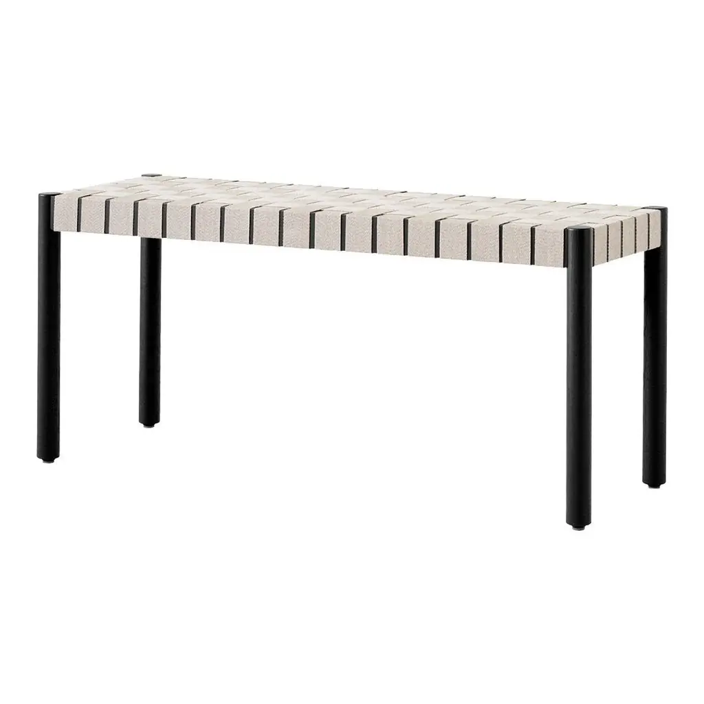 Named after the Betty Nansen theater in Copenhagen, designers Thau & Kallio fashion a handsome solid-oak bench with a woven seat made from exposed webbing. Hand-crafted from natural fibers, the linen webbing complements the lacquered wood available in black, twilight or maroon. From Copenhagen maker &Tradition, the bench comes in a choice of 2 lengths and is crafted from sustainably sourced timbers.