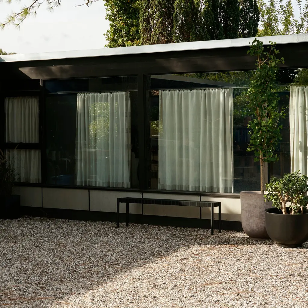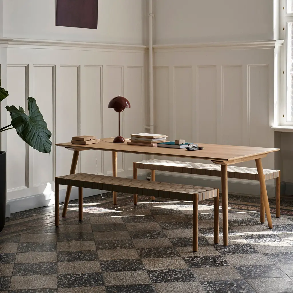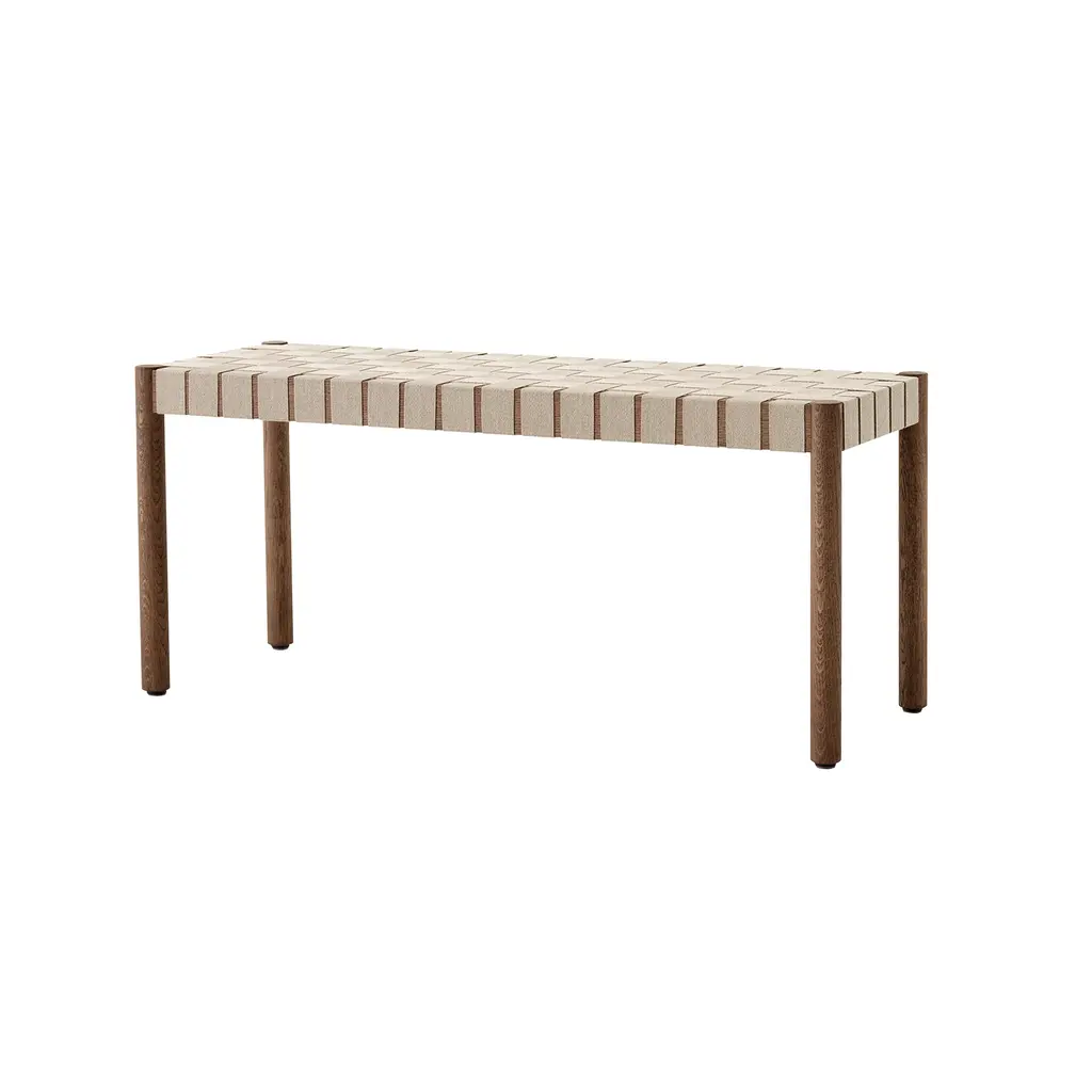 Named after the Betty Nansen theater in Copenhagen, designers Thau & Kallio fashion a handsome solid-oak bench with a woven seat made from exposed webbing. Hand-crafted from natural fibers, the linen webbing complements the lacquered wood available in black, twilight or maroon. From Copenhagen maker &Tradition, the bench comes in a choice of 2 lengths and is crafted from sustainably sourced timbers.
