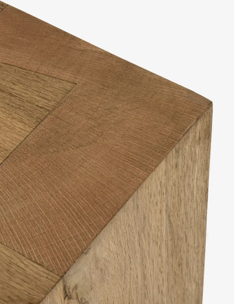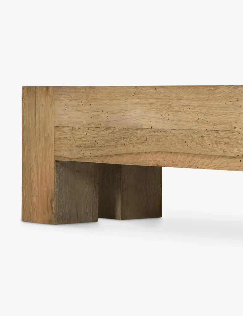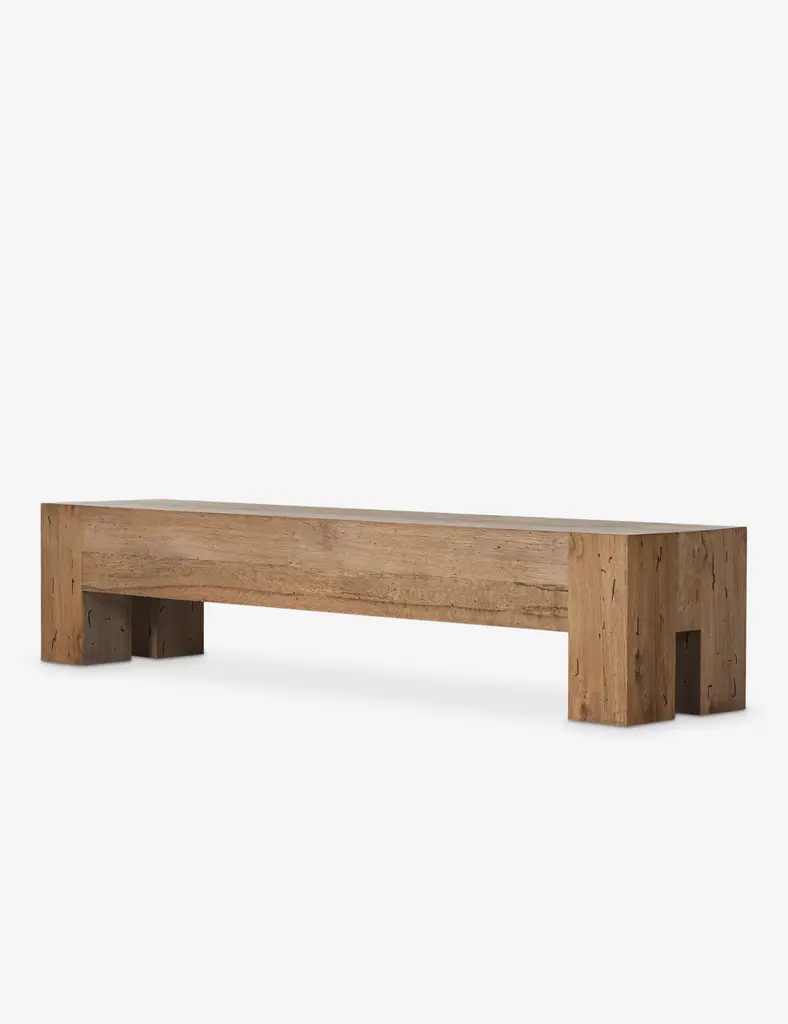 Chunky legs and dovetail joinery fashion this bench for rustic appeal. The distressed oak veneer creates a wormwood-like texture, adding endless character to its elemental design. We love the versatility of this bench for an industrial feel at your table or a flexible accent for a farmhouse edit.