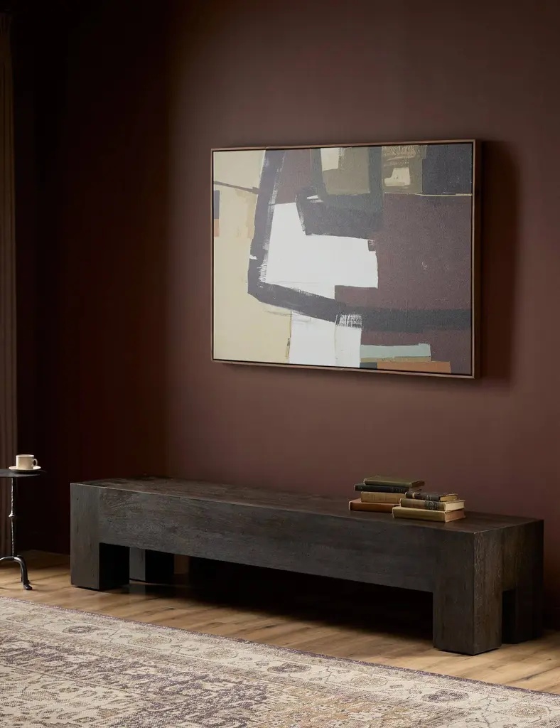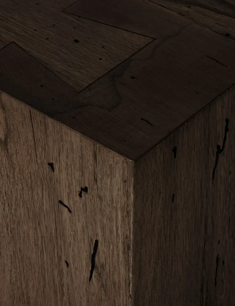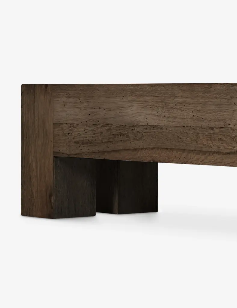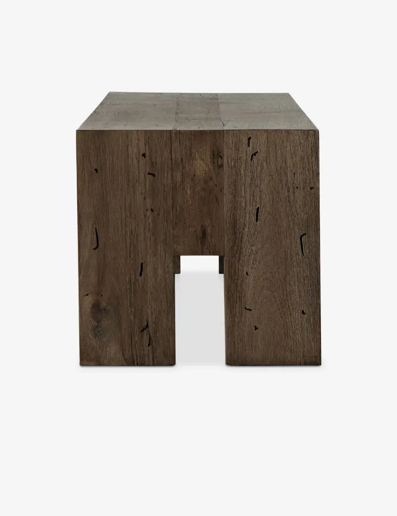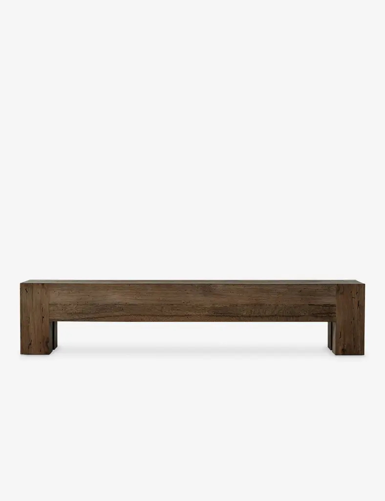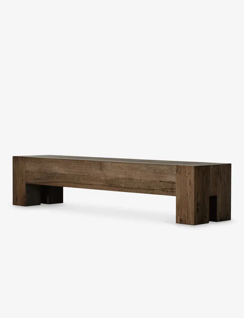 Chunky legs and dovetail joinery fashion this bench for rustic appeal. The distressed oak veneer creates a wormwood-like texture, adding endless character to its elemental design. We love the versatility of this bench for an industrial feel at your table or a flexible accent for a farmhouse edit.