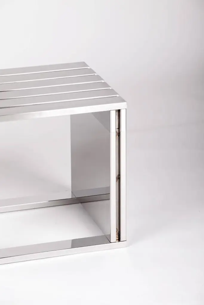 Bicroma bench, finds its inspiration in Industrial aesthetics. Designed by Parisotto and Formenton, it is suitable for Classic or contemporary contexts. Its solid structure is composed by 20 element of 2 mm thickness in stainless steel aisi inox 304 elements and sheets assembled without welding.The top part of the bench features a satin finish.Hand-wrought in Italy by our highly skilled team of welders.Dimensions: cm 150 x 43.6 x H 44 inches 59.06 x 17.17 x H 17.32.