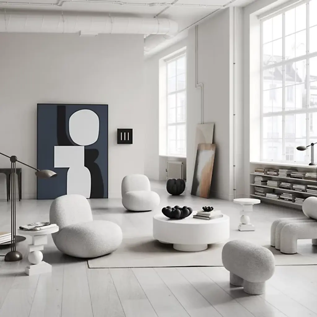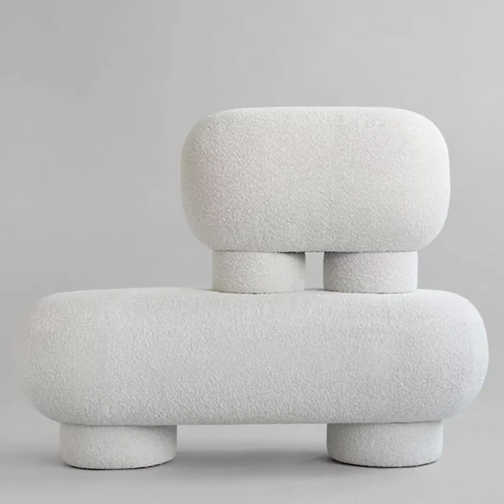 The Big Foot Upholstered Mini Bench by 101 Copenhagen may appear heavy and solid, but its fiber concrete construction is remarkably lightweight and easy to move. Inspired by brutalist architecture and contemporary sculpture, this bench features unique cylinder-shaped legs and textured painted surfaces. These distinct design elements give the Big Foot Upholstered Mini Bench a bold, sculptural presence, making it a striking and standout piece in any setting.