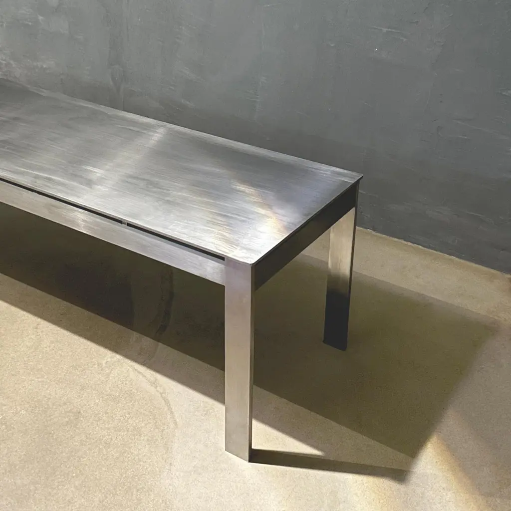 “Big Iron” Bench, Iron, JAMES VINCENT MILANO, Italy, 2022Bench. Floating Seat.Polished and brushed iron.Engraved logo plaque in satiated brass.Handcrafted in Cantù, Italy.Height: 44 cm Width: 180cmDepth: 40cmEach piece is made-to-order. Bespoke, one-of-a-kind commissions available.Cleaning/Care Kit with instructions included.JAMES VINCENT MILANO is a multidisciplinary design studio founded by Maria Valerio and Zachary Johnson in 2017. Offering bespoke garment and footwear, leather goods, objects and collectibles, furnitures and interiors. The duo designs and exclusively manufactures throughout Italy.