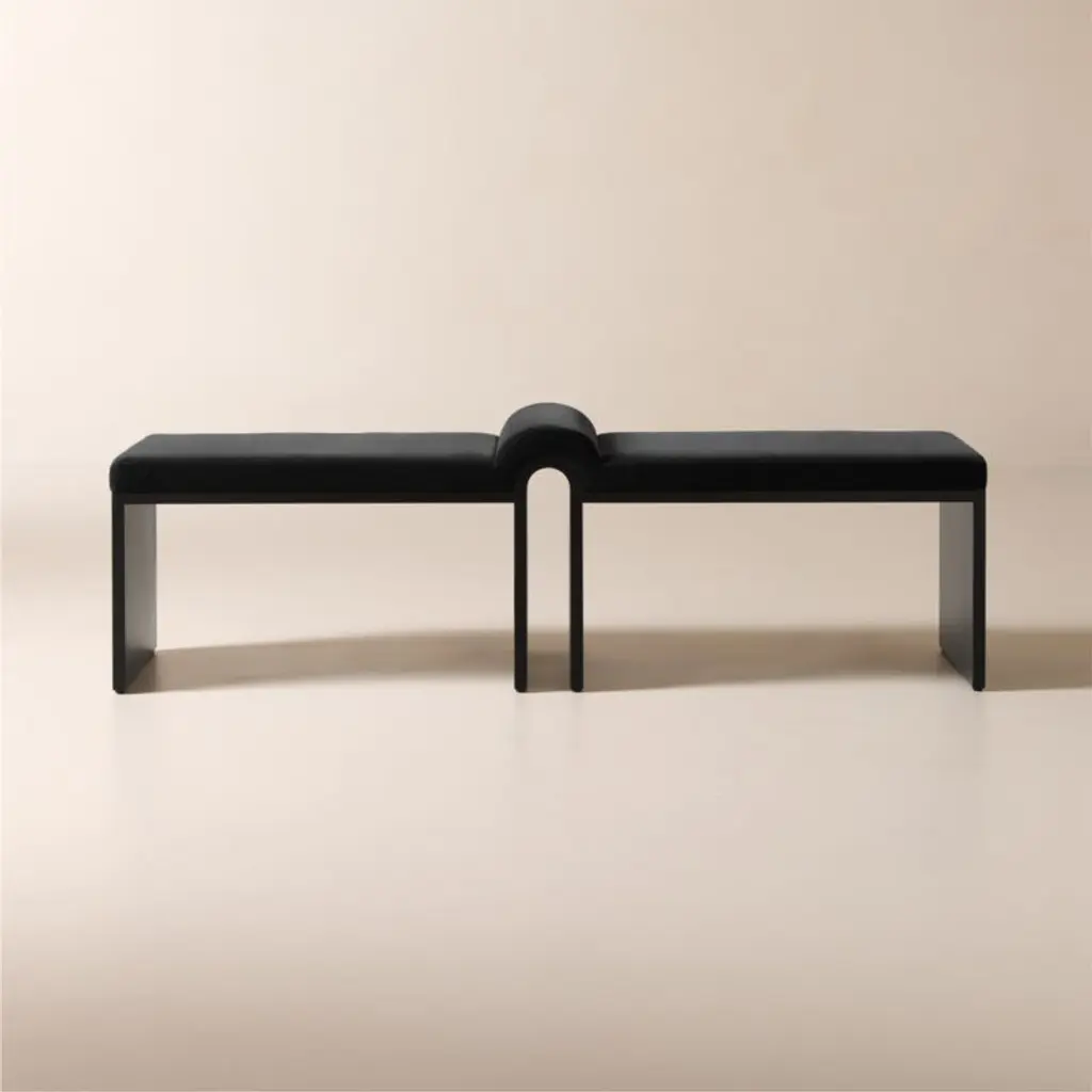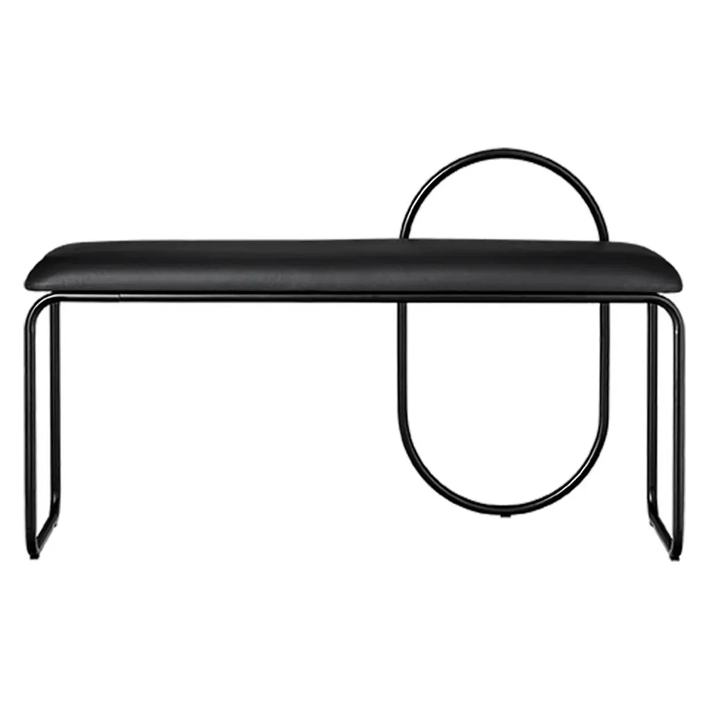 Black leather Minimalist benchDimensions: L 110 x W 39 x H 68 cmMaterials: Black leather, steelThe collection includes benches, chairs, shelves and mirrors in a wide variety of sizes.