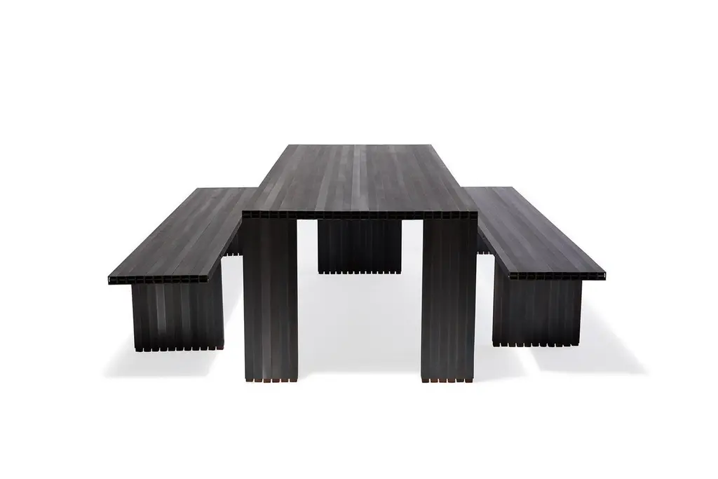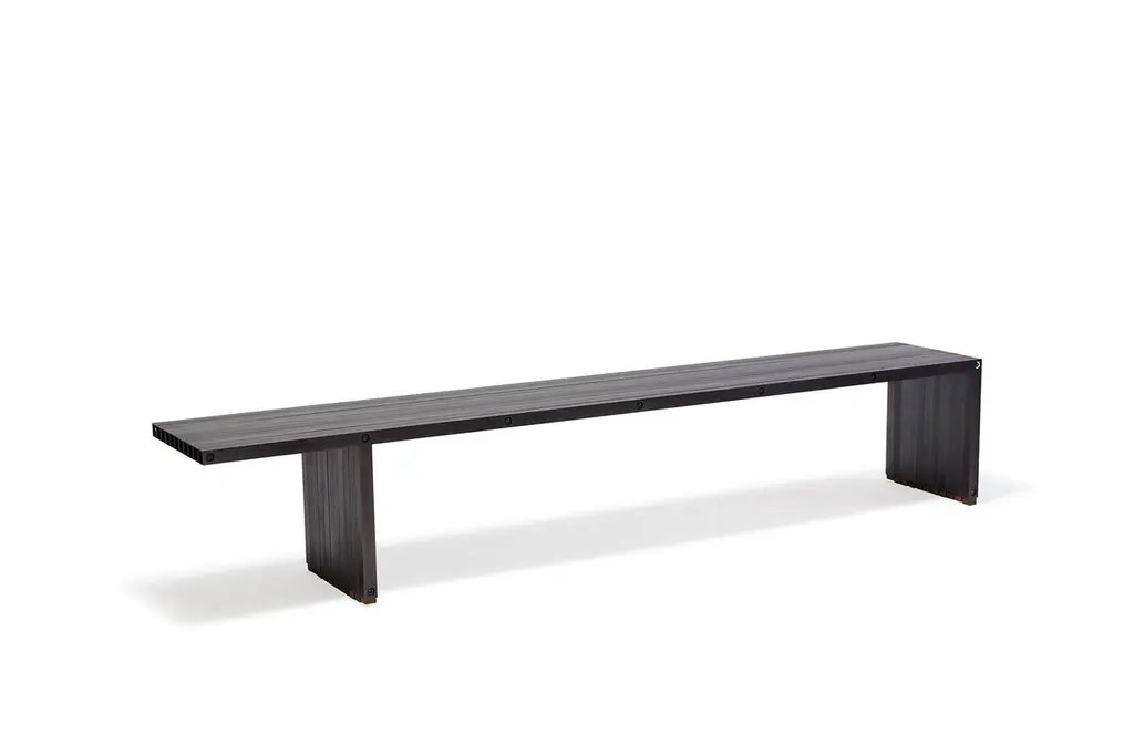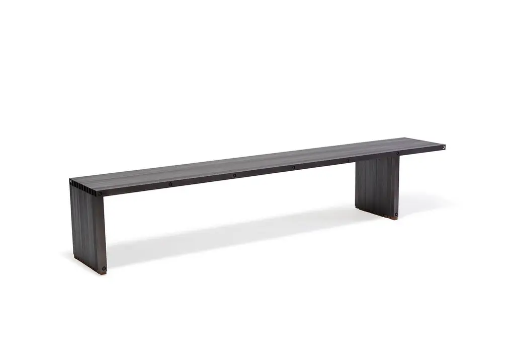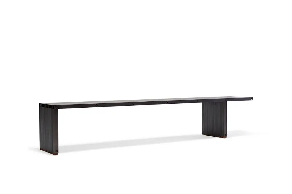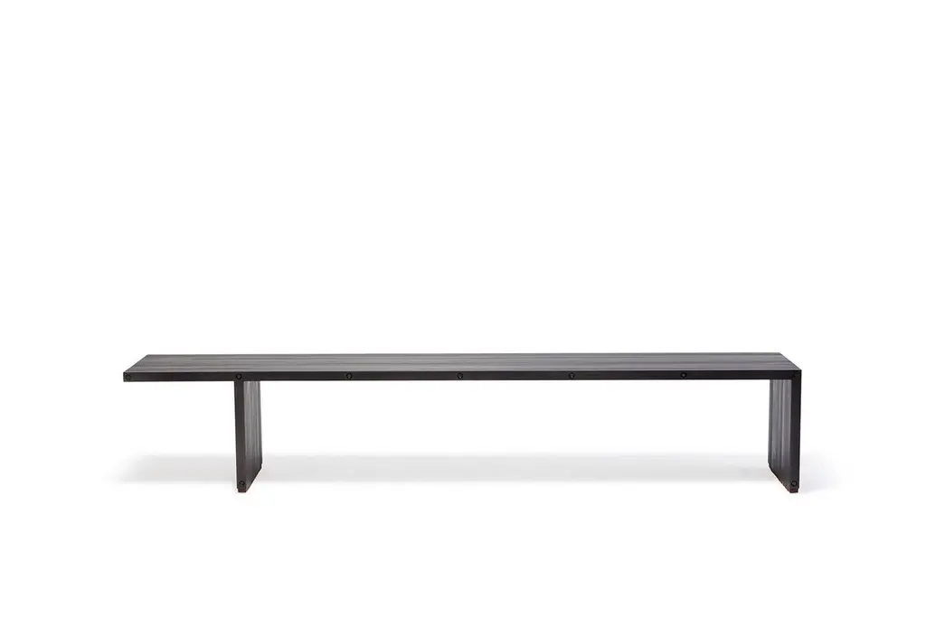 The Compression bench by Stephen Kenn is a celebration of simplicity and strength. The bars are held together without nails or welds, but through compression along steel rods. The Compression Bench can be paired with the matching Compression Table or used as a standalone piece.Every Stephen Kenn piece is made to order through our Los Angeles studio in partnership with a number of small businesses and fabricators in the LA area. With this customizable bench, you can select from a range of finishes and materials to complement your home and lifestyle, including options suited to indoor or outdoor use - please message us to see our Customization Guide with all available options. The aluminum version can be finished with antiqued nickel, brass, or copper, and the wood version is offered in walnut, oak, or maple. The simplicity of this design also allows us to easily customize dimensions.