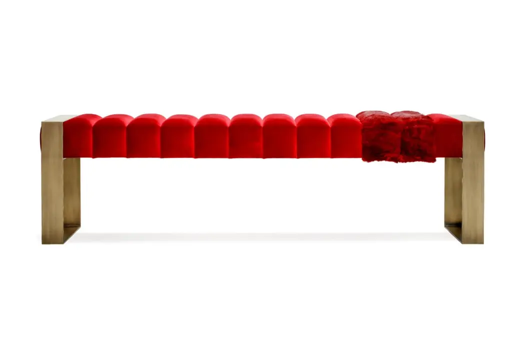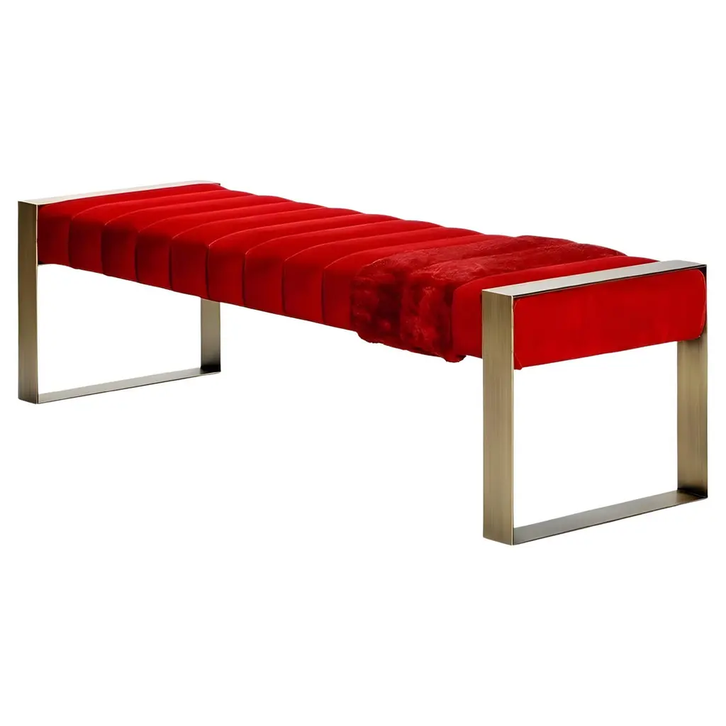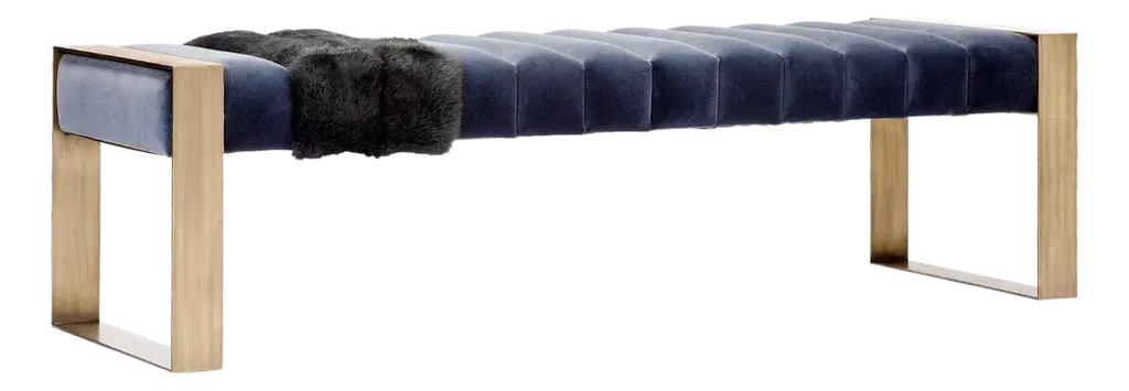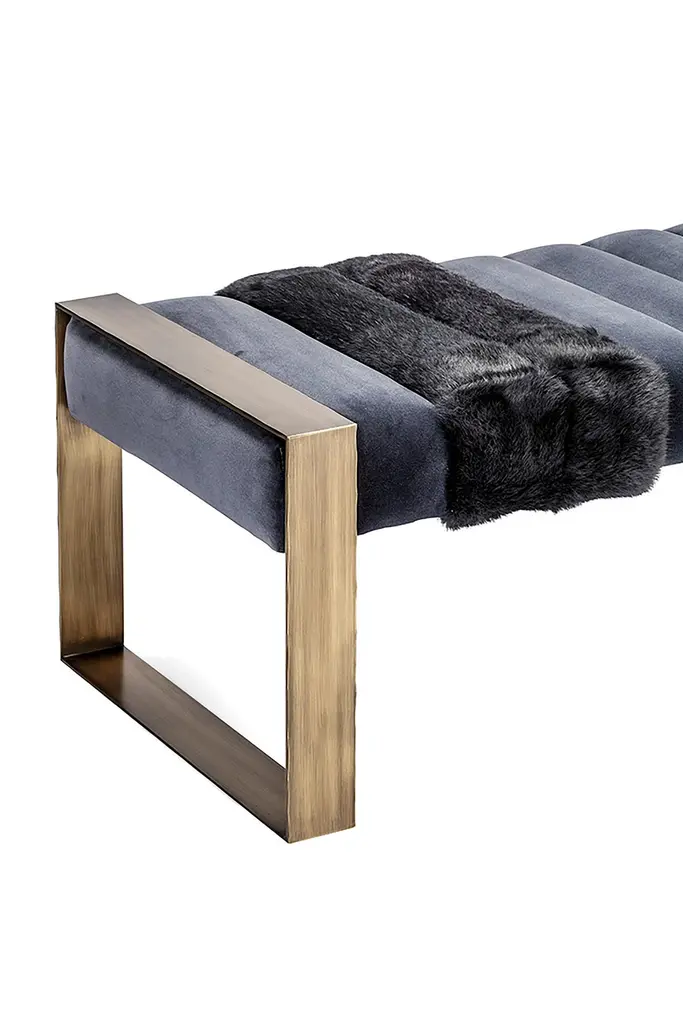 Blue Dawn Bench by DuisttDimensions: W 160 x D 50 x H 45 cmMaterials: Duistt Fabric, Fur and BrassThe DAWN bench, crafted with great attention to detail, is a statement design piece. The name Dawn is inspired by the pieces clear horizontal lines and the stability that the stripes and open structure provide us. The DAWN bench is a contemporary upholstered piece with an interesting twist of two fur strips. It evokes strength with the use of straight lines whilst the fur elements add a touch of femininity and luxury. This is an incredibly versatile piece with a variety of finishes, sizes, and colors.DUISTT is a Portuguese high-end furniture brand.Born in Porto in 2014, the company breathes history and modernity. We blend ancient knowledge and techniques with contemporary aesthetics.DUISTT designs refined and sophisticated pieces aiming to provide major comfort and quality. Handmade pieces crafted with art that are absolutely unique and can last generations.We invite you to discover our elegant and timeless designs and we hope it brings you pleasure.