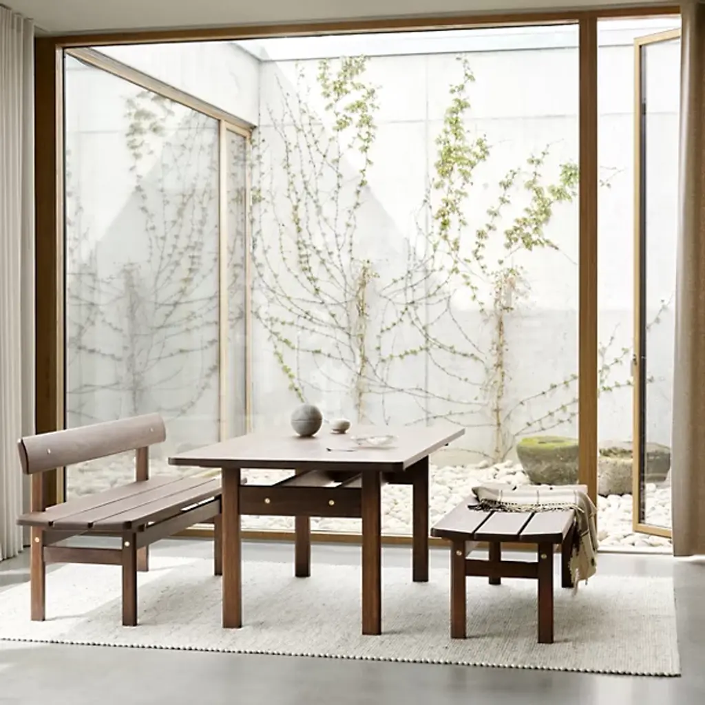 Pure serenity is in store with the balanced proportions and natural construction of the BM0699 Asserbo Bench with Backrest from Carl Hansen. Danish design icon Børge Mogensen's focus on visual clarity and minimal decoration resonates in this piece. Solid eucalyptus is refined into clean linear segments to showcase its natural texture and tones. A slatted design covers the seat rest for a classic bench look. Visible screws add a touch of bold decoration as reflective notes. The piece lets one lean back comfortably into a streamlined backrest defined by comfortable rounded edges.